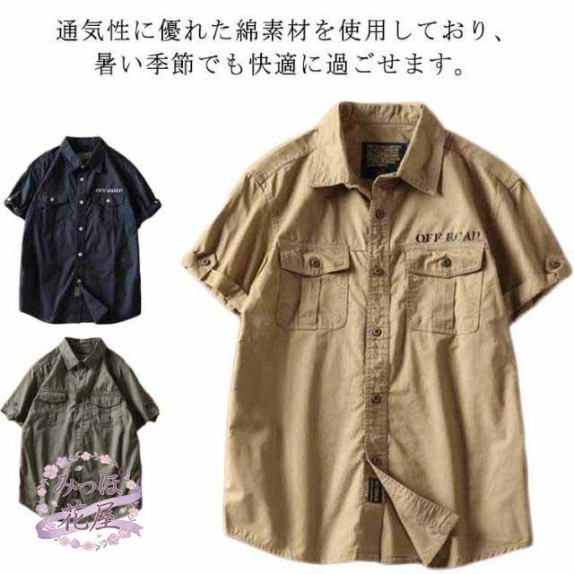 送料無料 半袖シャツ メンズ ミリタリーシャツ カジュアルシャツ ワークシャツ ミリタリー スリム シャツジャケット 綿混 夏物 半袖 無地 メンズファッション 大きいサイズ シャツジャケット コットンシャツ アメカジ ポケット付き トップス 父の日