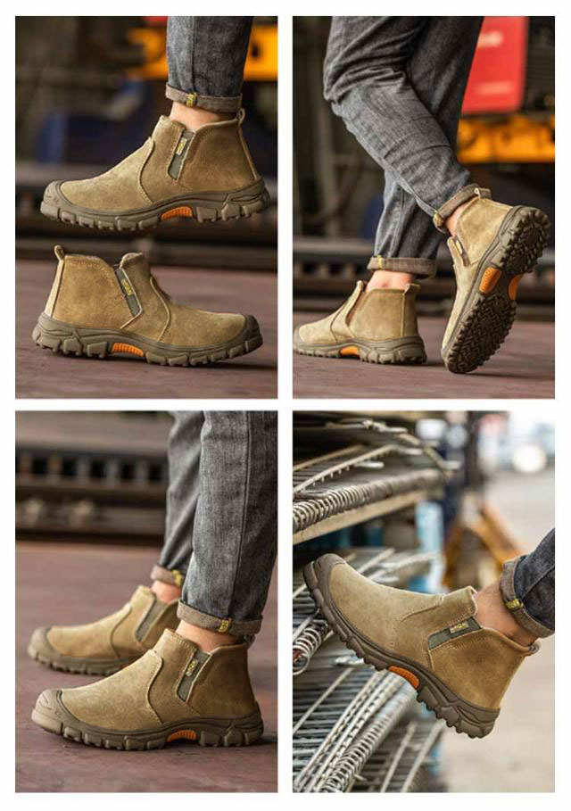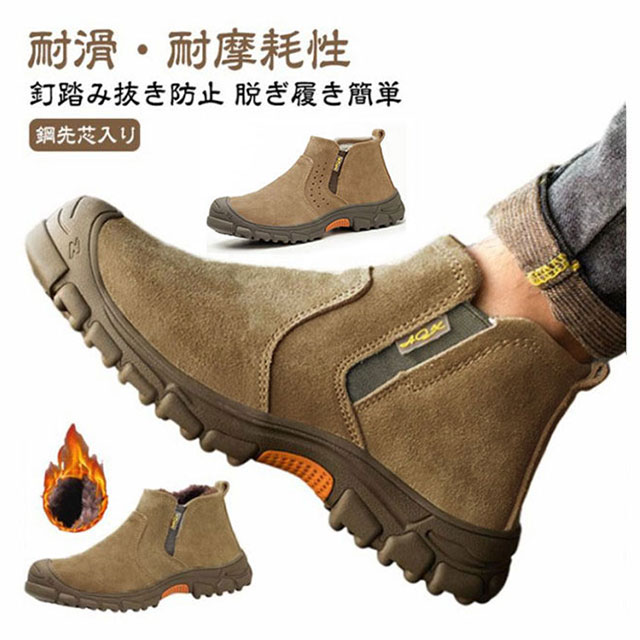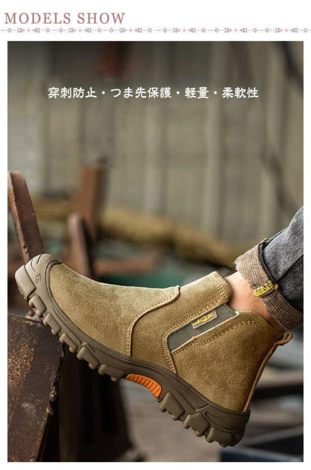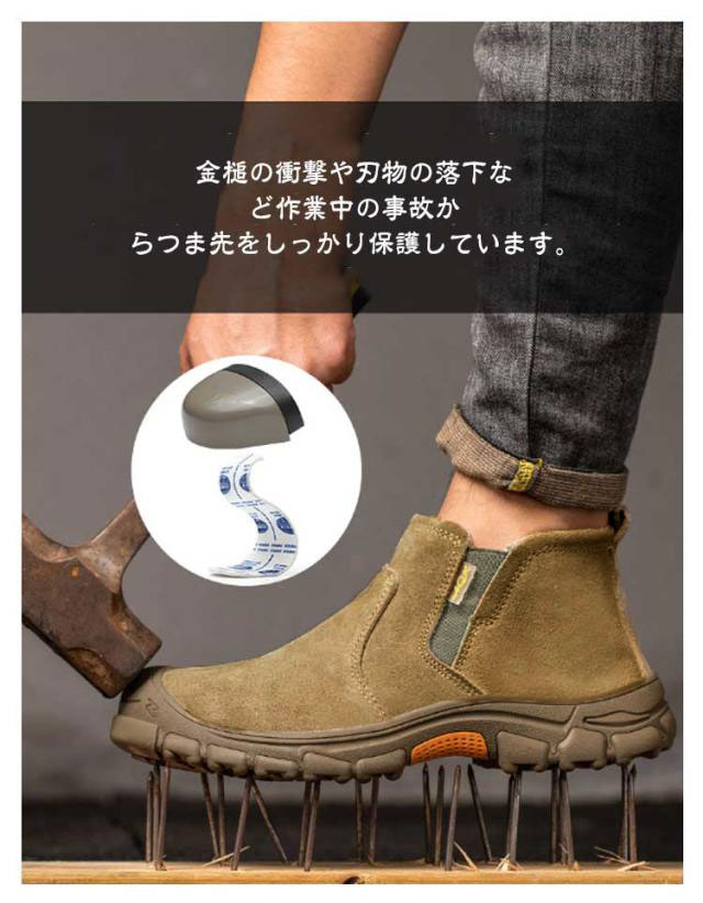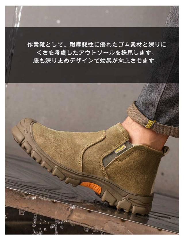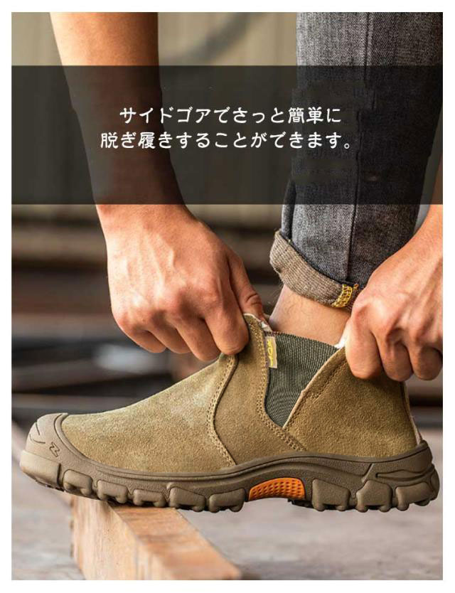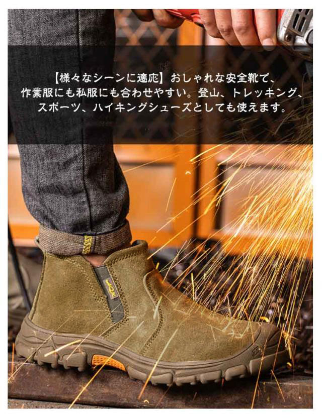 作業靴 安全靴 溶接 スエード革 ハイカット 紐無しブーツ サイドゴア 軽量 踏み抜き防止 鋼先芯 つま先保護 セーフティーブーツ メンズ レディース 安全スニーカー 歩きやすい 疲れない 耐滑 耐摩耗 男女兼用