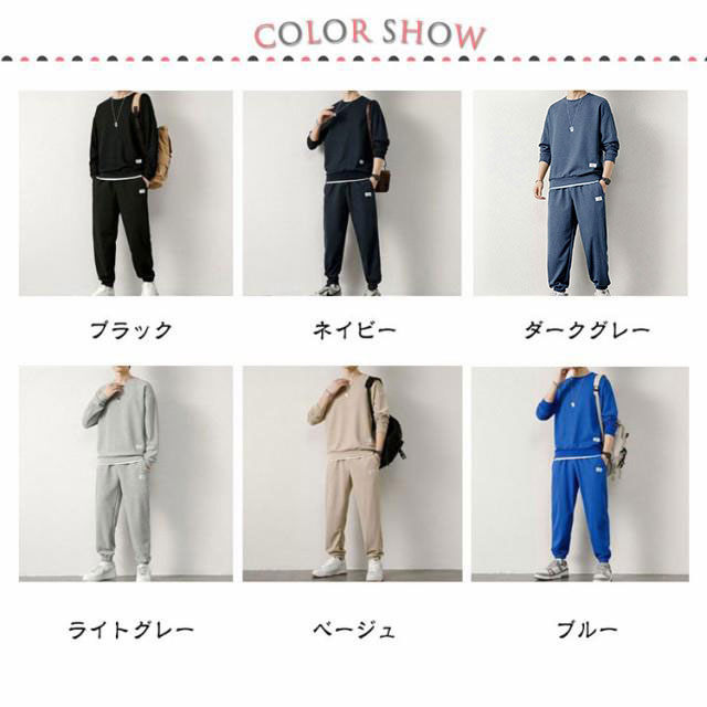 | 【全8色】【M?5XL】【上下セット】 上下別々でもコーディネートに使える、カジュアルでスタイリッシュなセットアップ。 通気性、やわらかな生地と動きやすさに満足。 薄すぎない程良い厚さと柔らかな肌触りの生地感でしわになりにくくロングシーズン使える。 1セットあれば様々なコーディネートとシーンでお使いいただけます。 お出かけやスポーツにはもちろん、おうち時間のルームウェアにも◎ | |