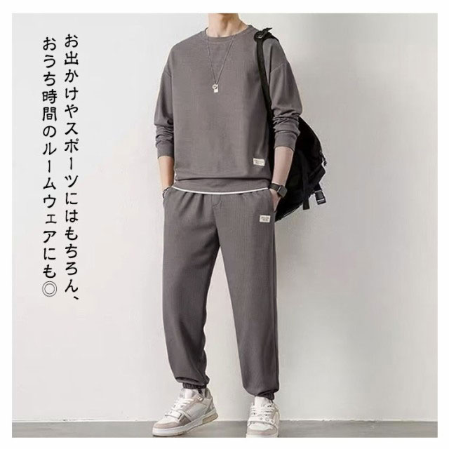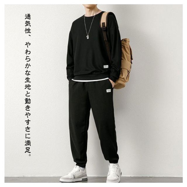 スウェット 上下セット メンズ ジャージ 長袖 トレーナー スウェットパンツ 春秋 スエット 無地 重ね着風 スポーツウェア 秋冬 春 クルーネック 春物 秋服 運動着 部屋着 大きいサイズ 黒 ルームウェア 外出 学生 ズボン セットアップ