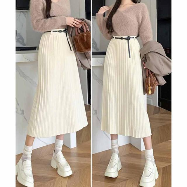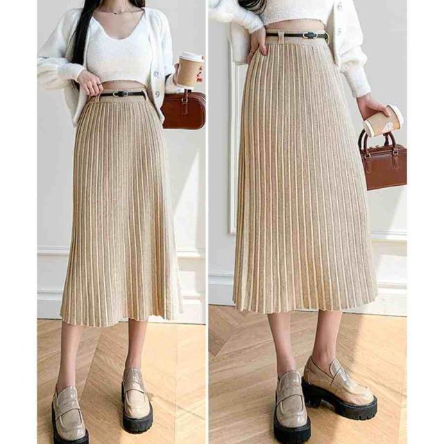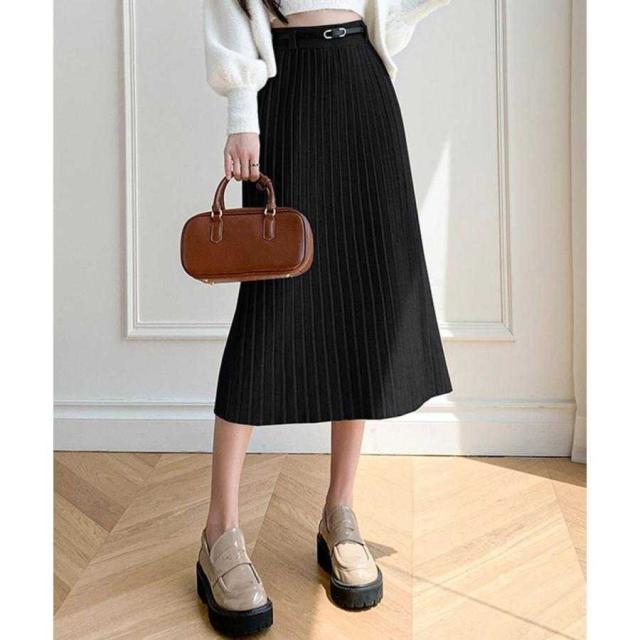 ハイウエスト プリーツニットスカート秋冬