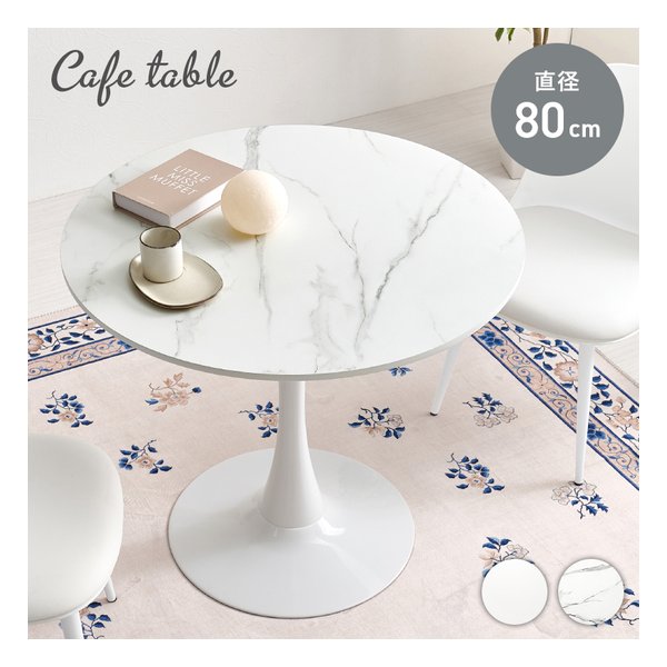 萩原 (ハギハラ) カフェテーブル [直径80cm/マーブルホワイト] BT-8659MWH