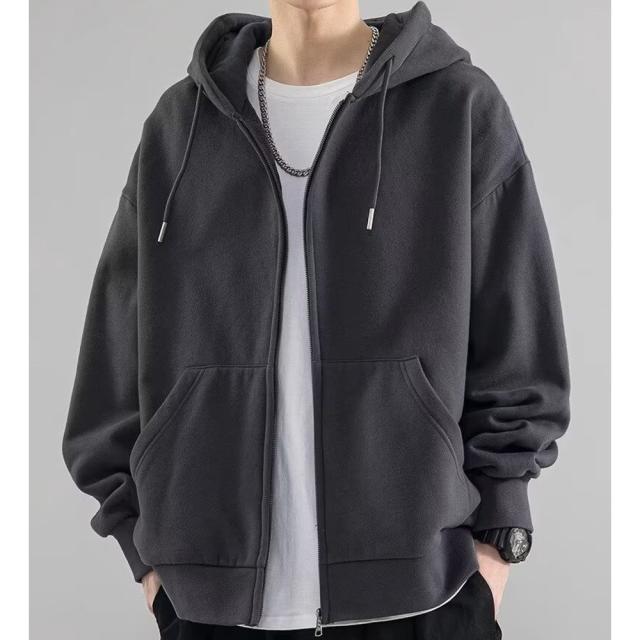 長袖フード付きジップパーカー。