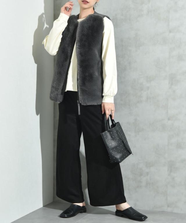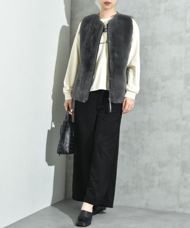 インタープラネット(INTERPLANET)/スエードポンチウエストゴムワイドパンツ