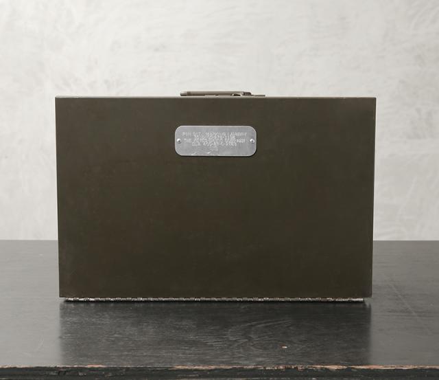 | 商品説明 | 実物 新品 デッドストック 米軍 1980〜1990’s ヴィンテージ 真鍮製 ランドリーピン ケース付き フルセット KEYES DAVIS社製のご紹介です。 制式名称:PIN SET, MARKING LAUNDRY 米軍内で洗濯物を識別する為に使われていたセーフティピンの希少なケース付きフルセットが入荷しました。こちらはKEYES DAVIS社製造の個体で年代は1980年代〜90年代ごろのものになります。 ピンは真鍮製で、その丈夫さから多くの兵士がキーホルダー代わりにしていたといわれるほど雰囲気の良い逸品。 分隊(10人くらいの陸軍での最小編成)ごとにナンバリングを変えて識別していたそうで、それぞれのピンには数字とアルファベットのエンボス加工が入っています。 アルミ製の格納ケースに20本のピンを1ブロックとして、24個のブロックが収められており、予備用の無刻印のピン50本も完備。また、アンモボックスのような丈夫さとミリタリーものらしい無骨な趣を兼ね備えた全体を収めるプレート付きスチールケースも非常に魅力的です。 ピンはストールやスカーフ留め、デニムやジャケット、帽子に付けてブローチ感覚で使用したり、束ねて簡易キーホルダーにするなど、シンプルですが、使い方次第で魅力が広がるアイテム。スチールケース自体もインテリアとして抜群の存在感を放ちます。 予備のピンまで完備したデッドストック状態でのケース付きフルセットは非常に珍しく、今ではほとんどお目にかかることもできない貴重なアイテムです。実用性も兼ね備えた、歴史を感じるコレクションの一部としてぜひ手に入れてみてはいかがでしょうか。 ※ピン、ブロック、ケースフルセットでの販売です。 |