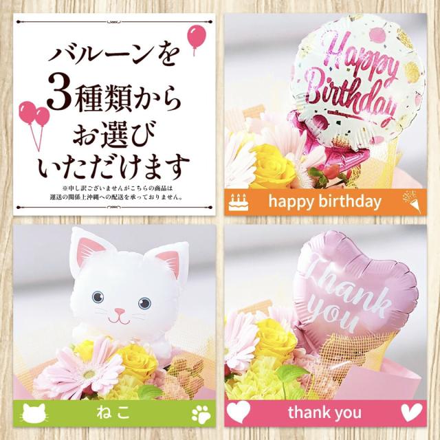 ※配送の都合上、風船つきは沖縄県宛への受付ができかねます。発送先が沖縄県のご注文に関しては一律キャンセルとさせていただきますのでご了承ください。