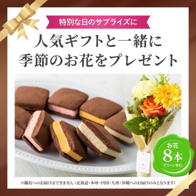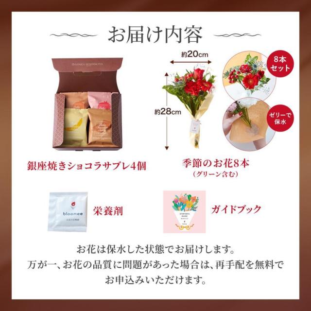 【翌日配送〆13時】母の日 花とセット 花 お菓子 お花 スイーツ ギフト 誕生日 銀座焼きショコラサブレ4個とお花8本プラン 花 ブーケ 生花 花束