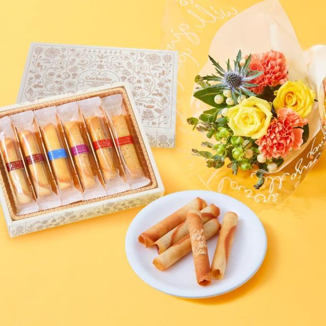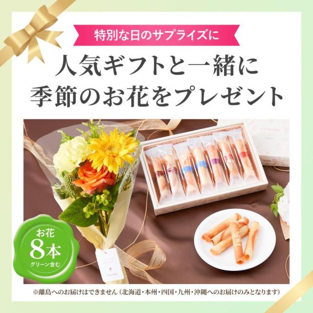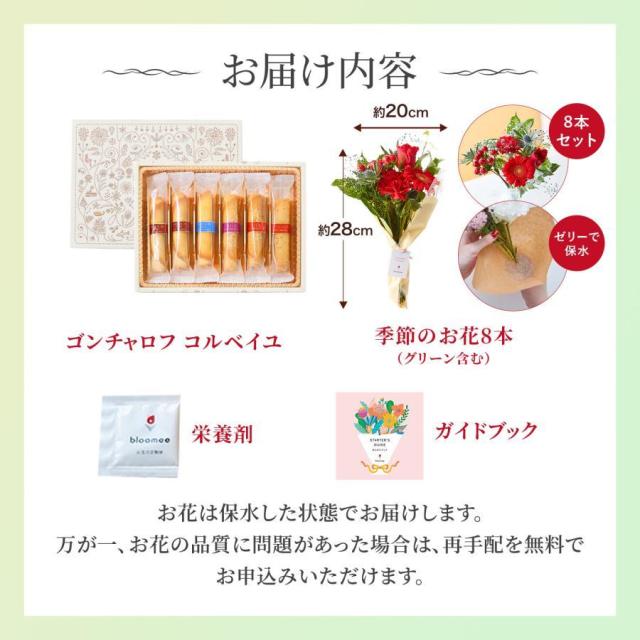 【翌日配送〆13時】母の日 花とセット 花 お菓子 お花 スイーツ ギフト 誕生日 ゴンチャロフ お花8本ブーケ付き ロールクッキー 焼き菓子 コルベイユ