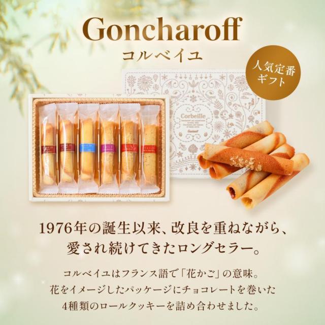 ・ゴンチャロフ コルベイユ(6本) 焼き菓子 ロールクッキー(23.8cm×15.8cm×3.3cm)ラングドシャ(ホワイトチョコレート/アーモンドミルクチョコレート)チュイール(ホワイトチョコレート/アーモンドミルクチョコレート)