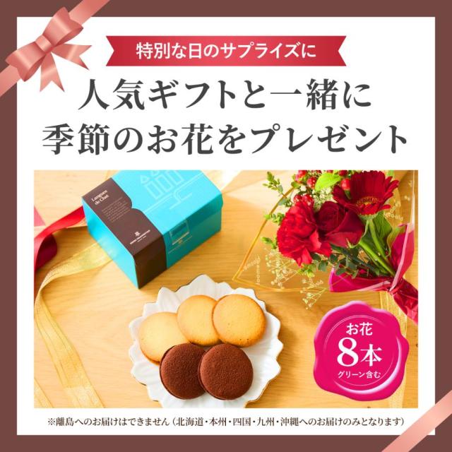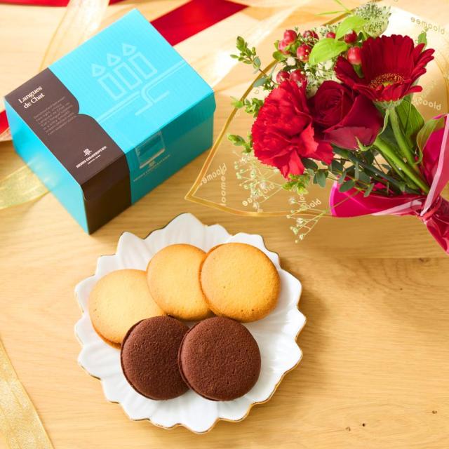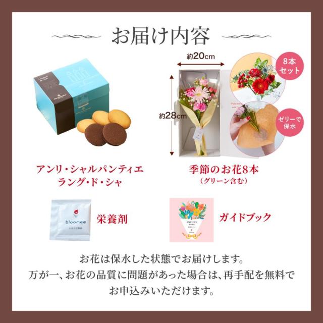 【翌日配送〆13時】母の日 花とセット 花 お菓子 お花 スイーツ ギフト 誕生日 アンリシャルパンティエ レーズン ラング・ド・シャ 5個入 × お花8本 ブーケ セット 個包装