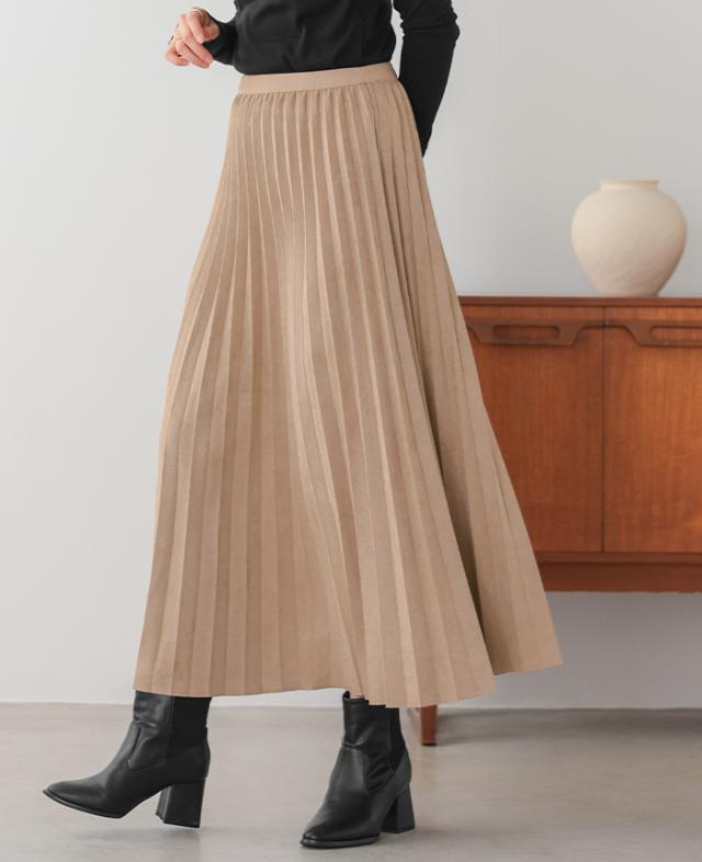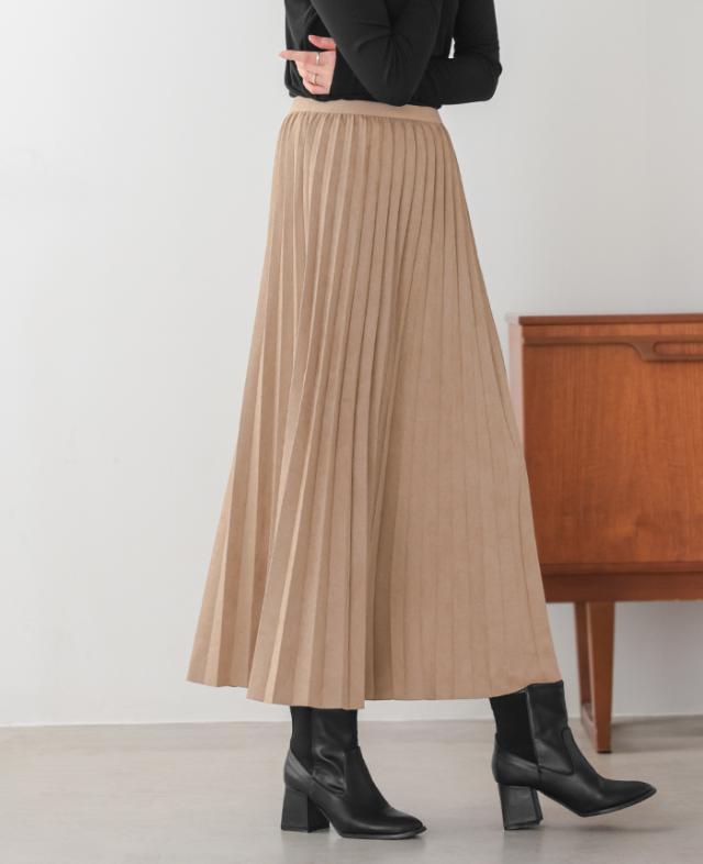 [新作限定P10%×送料無料]マシュマロスエードアコーディオンプリーツスカート ボトムス【メール便不可】