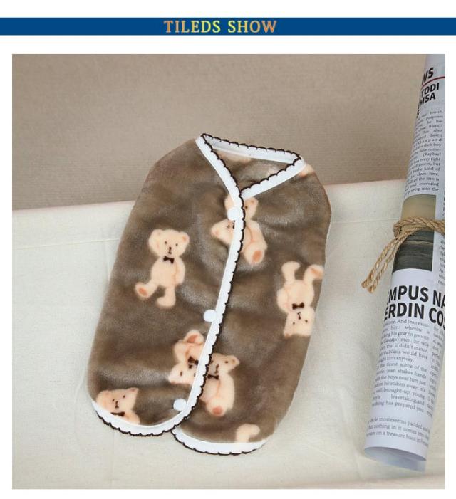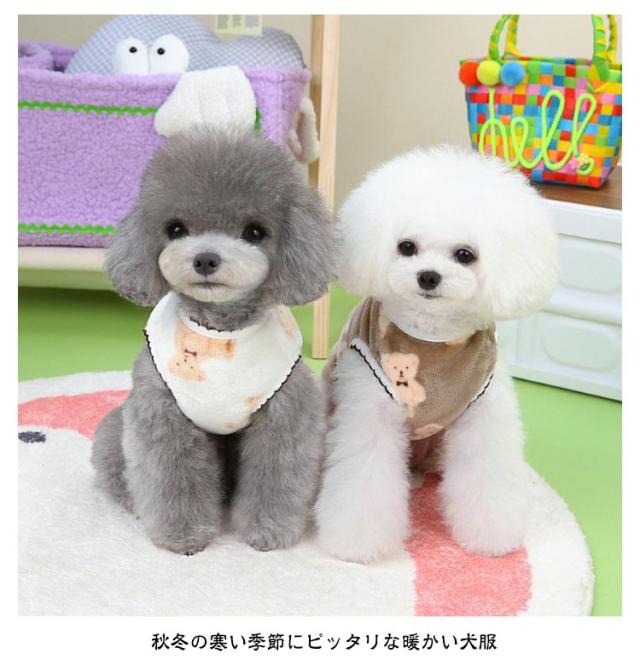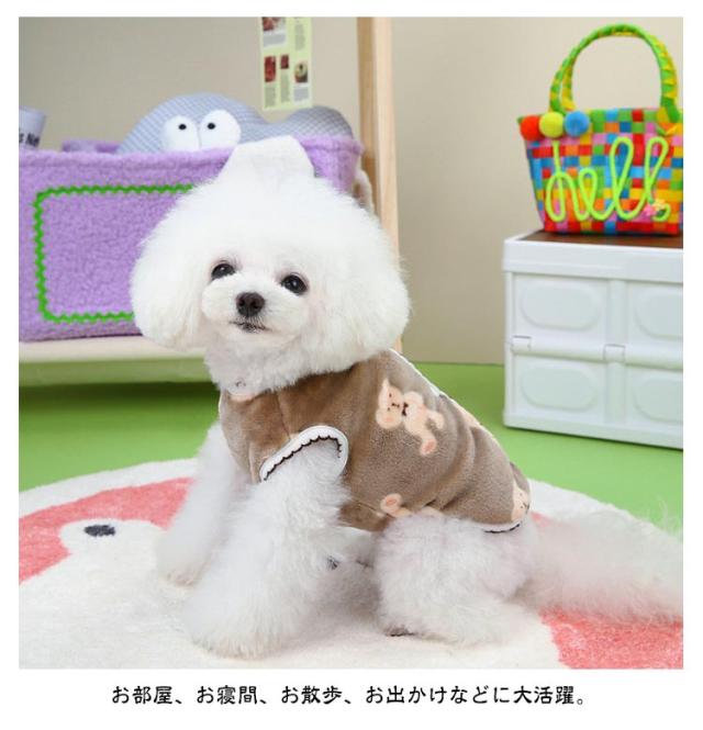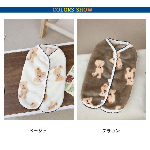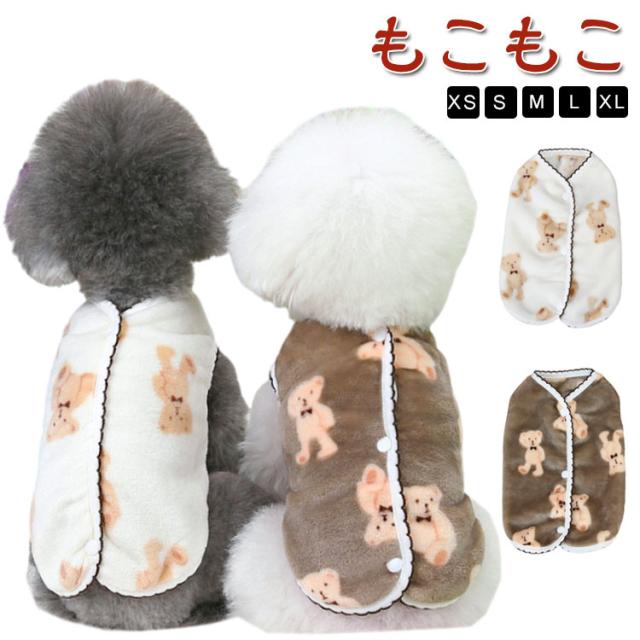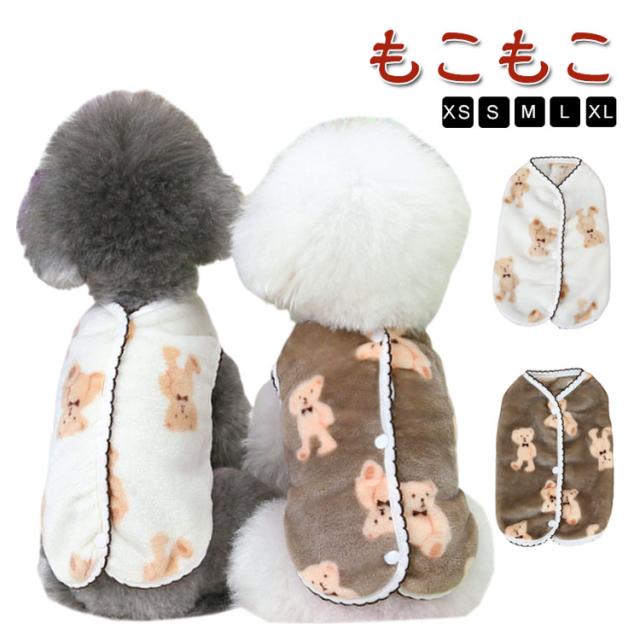 ドッグウェア 防寒 服 小型犬 犬服 前ボタン もこもこ 犬服 ベスト 裏起毛 袖なし 暖かい ダウン 前あき 背中開き クマ柄 オシャレ あたたかい 可愛い 保温 寒さ対策 重ね着 柔らかい 防寒着 女の子 男の子 猫服