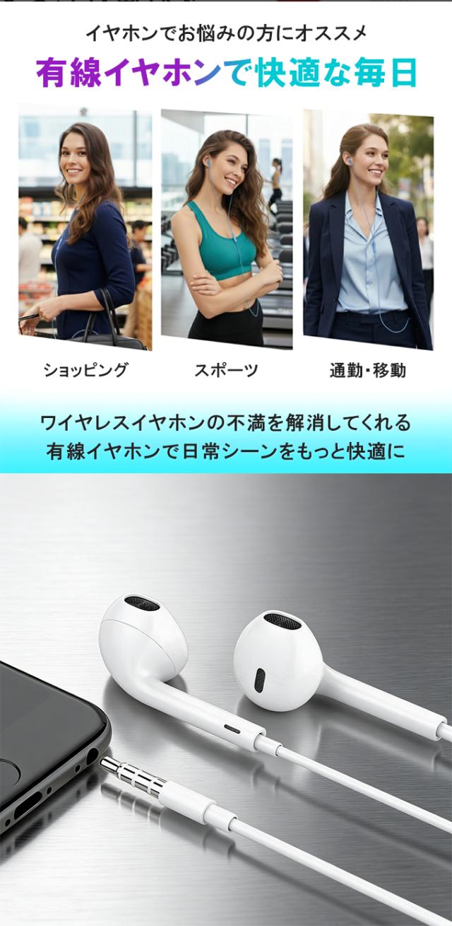 イヤホン 有線 HiFi音質・マイク内蔵・リモコン付き 3.5mmジャック 通話可能 有線イヤホン HiFi音質 イヤホンマイク 快適な装着感 人間工学 マイク付きイヤホン