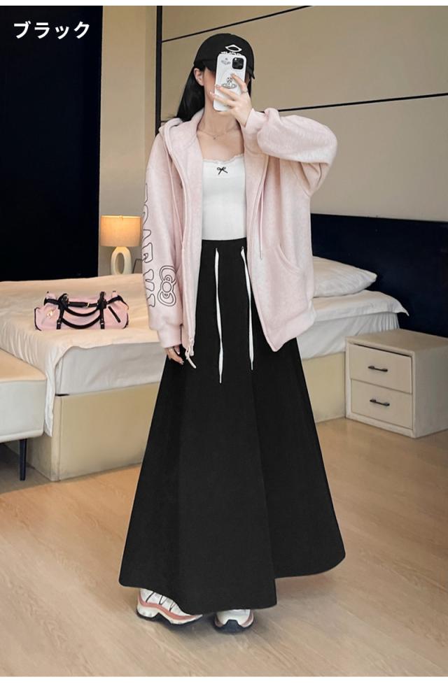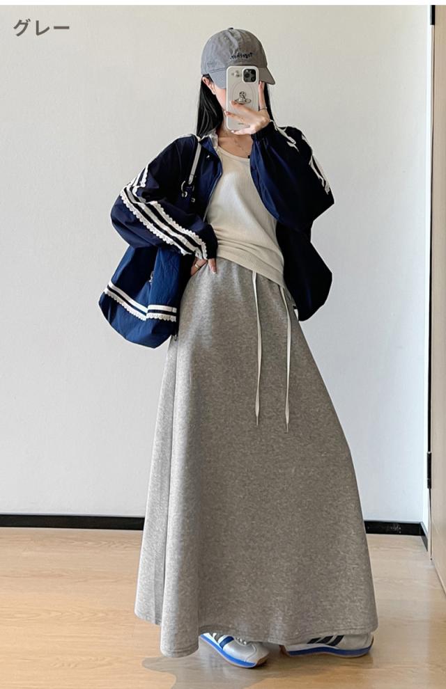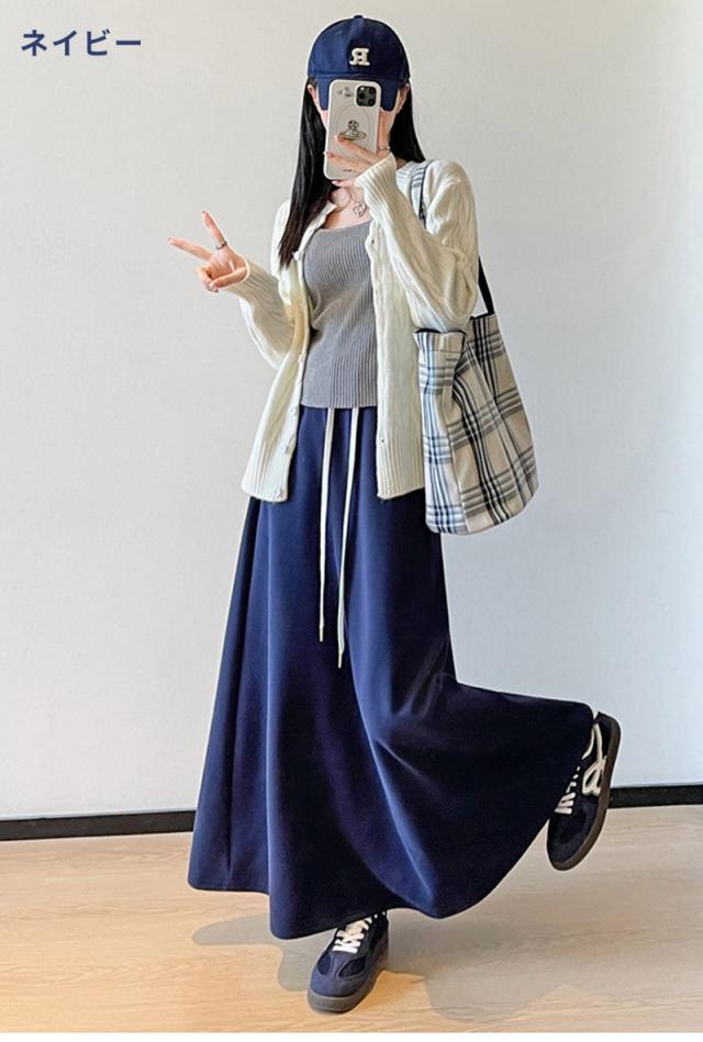 スカート ロング スウェットスカート 動ける ウエストゴ ゆったり 体型カバー 着痩せ ボトムス 上品 オフィスカジュアル きれいめ 大人 春秋 黒 2025秋冬新作