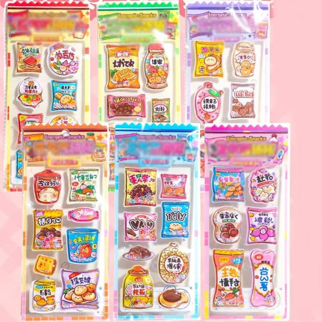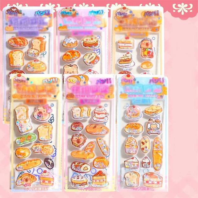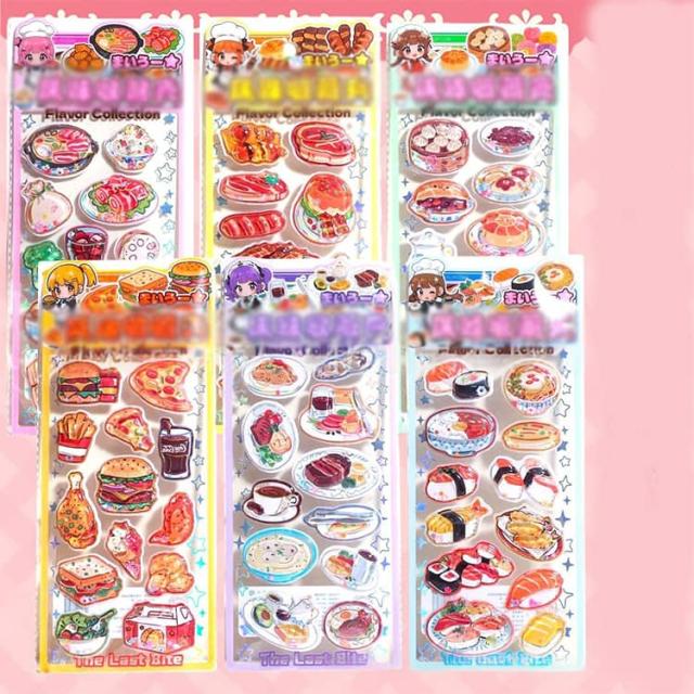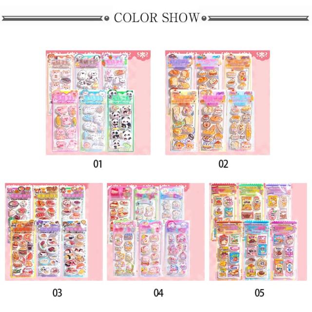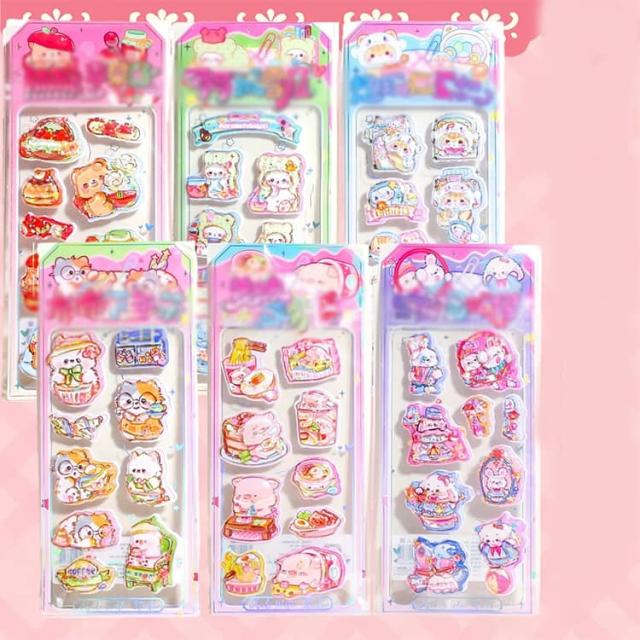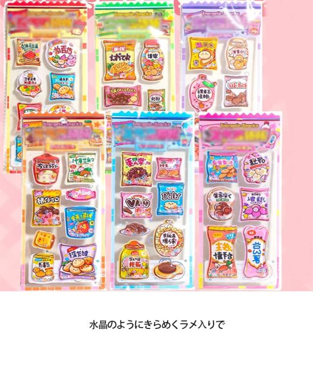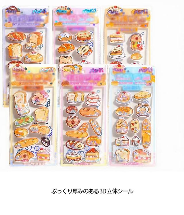 6枚セット ウォーターシール 食べ物 カラフル シール かわいい キャラクター 水入りシール ぷくぷく 揺れる 女の子 6枚セット 3d立体 デコシール 福袋 小学生 可愛い 動物 ご褒美シール 水晶ラメデコシール