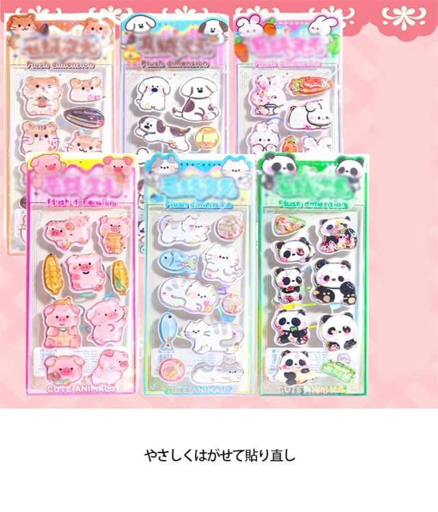 | 【6枚セット】ぷくぷく揺れて、見ているだけでワクワクするウォーターシール。 中に入った液体がゆらゆら動く、見て・触って楽しいぷっくり立体感たっぷりのウォーターシール6枚セットです。 水晶のようにきらめくラメ入りで、貼るだけでデコレーションが一気に可愛く仕上がります。 ぷっくり厚みのある3D立体シール、水入りで揺れるウォーターイン仕様、犬・パンダ・ぶた・ねこ・うさぎ・パン・寿司などカラフルで可愛い食べ物や動物がたっぷり、バリエーション豊富で飽きない、コレクションやシール交換にバッチリ。 思わず集めたくなる、ぷくぷく×キラキラかわいいウォーターシールセットです。 やさしくはがせて貼り直しOK(※再利用の目安:軽く貼った場合)、シール交換も。 6枚入りでコスパ抜群。友だちとシェアしても楽しい♪ | |