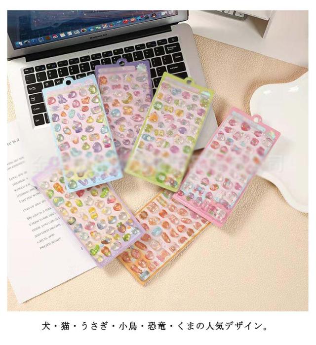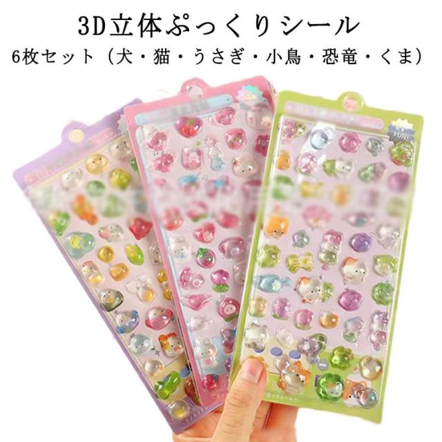 | 3D立体ぷっくりシール 6枚セット(犬・猫・うさぎ・小鳥・恐竜・くま) ぷっくり立体の3Dエンボス仕様 触れるとわかる存在感。 可愛い動物キャラ6種類 犬・猫・うさぎ・小鳥・恐竜・くまの人気デザイン。 スマホケース・手帳・文具のデコに最適、ごほうびシールとしても大人気。 | |
