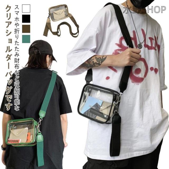 メンズ サコッシュバッグ カジュアル レディース ポーチ付き 大容量 PVC クリアバッグ ショルダーバッグ pvcバッグ 2way 軽量 ビニールバ