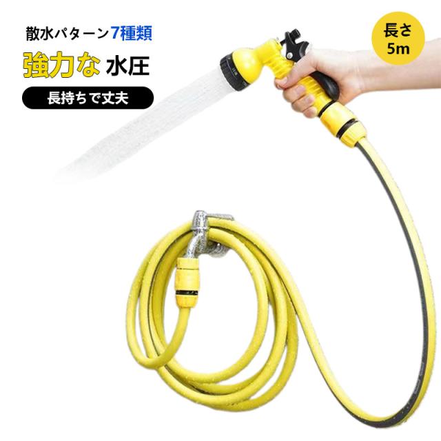 ホース 5m 改良版 7段階調整 ホース 5mホース 水撒きホース 散水ホース 高圧洗浄も 絡まない ガーデニング ホース 掃除 洗車 軽量 軽い