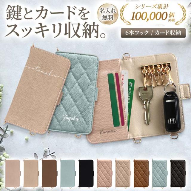 キーケース 手帳型【くすみレザーorキルティング手帳ケース×名入れ】鍵 カギ スマートキー 6連フック 6連 6連キーケース カード収納 キルト レザー 革 皮 PU くすみ 韓国 ギフト 名入れ無料 メール便送料無料 受注生産【印刷】