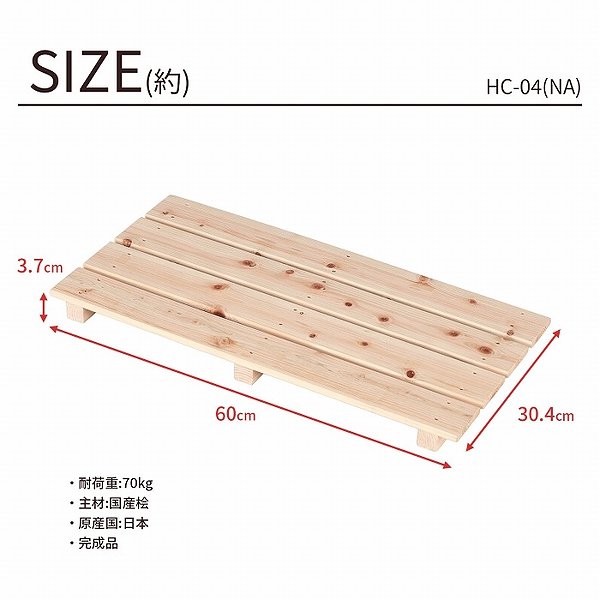 10個セット 国産ひのき すのこ 押し入れすのこ (約)60×30 日本製 完成品 幅60cm 奥行30.4cm 高さ3.7cm 天然木 木製 スノコ 台 高さ4cm以下 4枚打ち おしゃれ すのこ板 バスマット 脱衣所 浴室 クローゼット 玄関 湿気対策 防虫 防カビ 軽い 桧 檜 シンプル ナチュラル HC-04