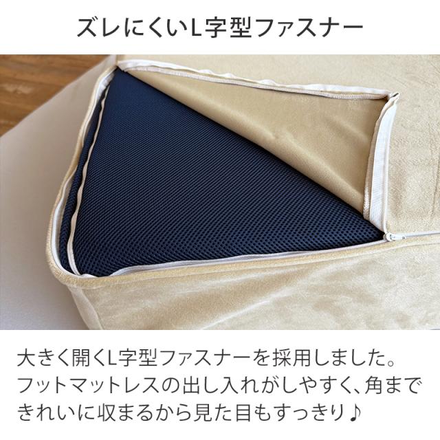 ※首狩り族のフットマットレス専用のカバーです ■なめらかなソフトボア生地 ベロアのような上質感と、ソフトボアならではのやさしい肌ざわりを両立した生地です。 ■オールシーズンで使いやすい ふんわりと足を包み込みながらも、生地感は軽め。季節を限定せず、一年を通して使いやすい質感に仕上げました。 ■着脱らくらくL字型ファスナー すっぽりと収納できるL字型ファスナーなので、簡単に着脱できます。フットマットレスにきれいに収まるので見た目もスッキリです。 ■安心の日本製 縫製から製造まで日本で行っています。 | ||