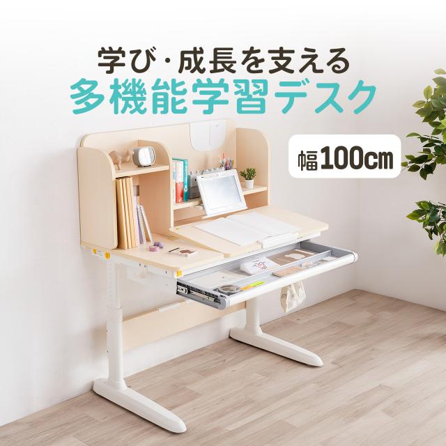学習机 勉強机 小学生 デスク 多機能 学習デスク タブレット対応 手動昇降 チルト天板 シェルフ付 ハンギングボード 低ホルムアルデヒド かわいい おしゃれ シンプル[100-ERD052LM]