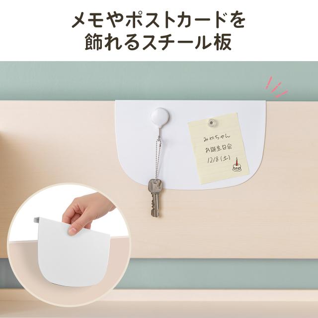 ●移動可能な金属製スチール板はマグネットが取り付けられるので、予定表やメモ、ポストカードを飾ることができます。