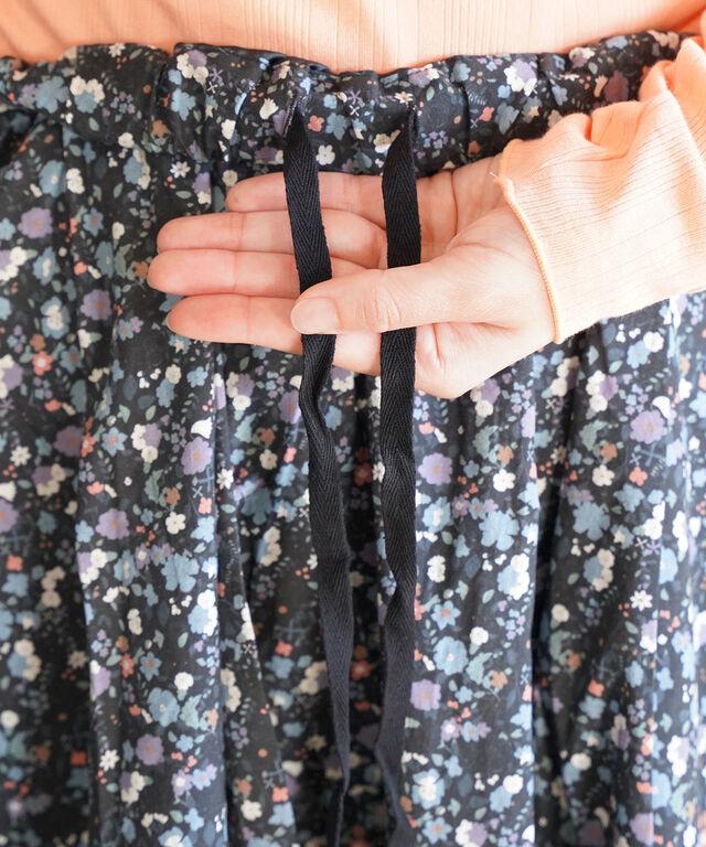 ウエスト周りはゴムと内紐仕立てで、お好みで調節が可能。