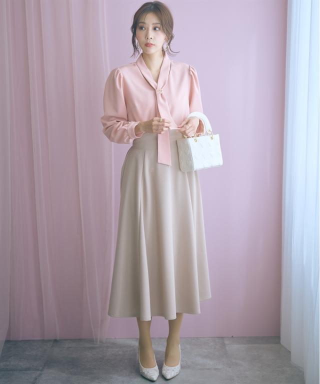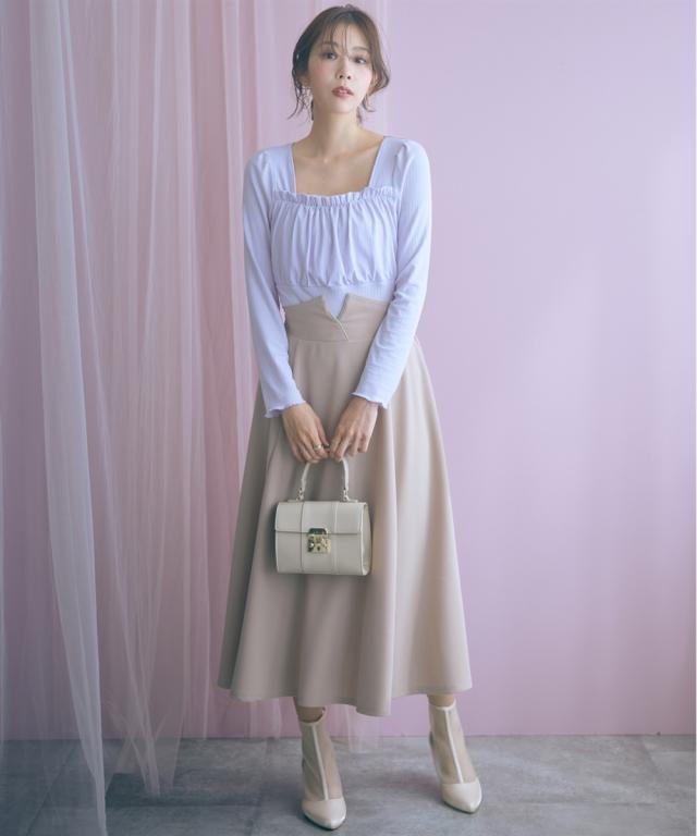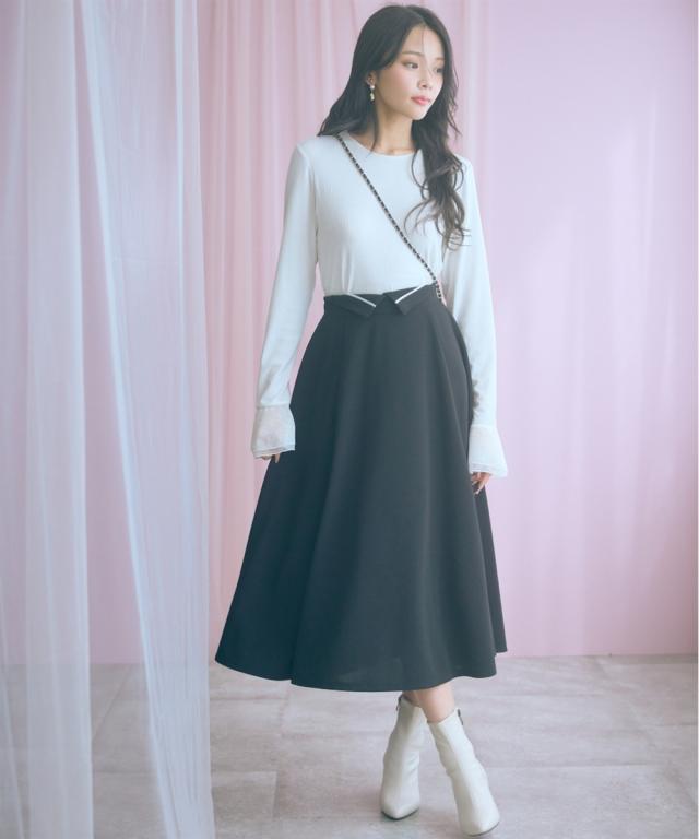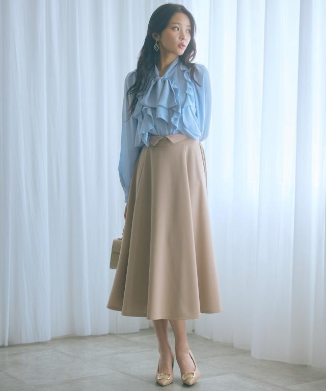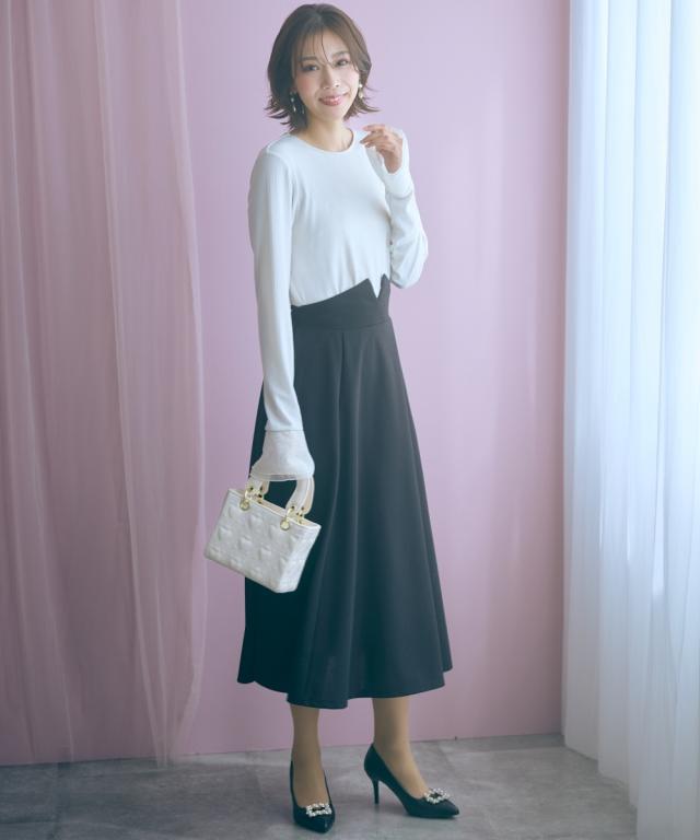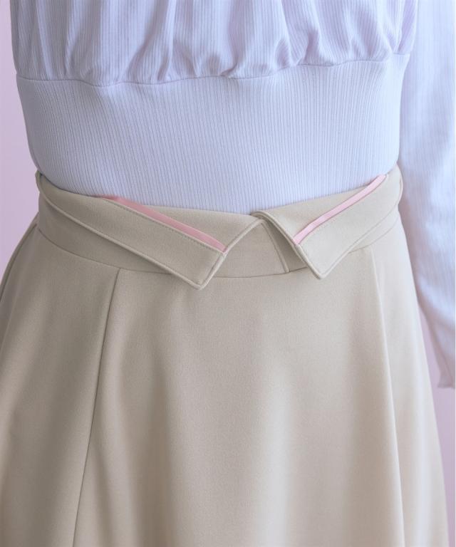 上品なミディ丈とハイウエストデザインが魅力のスカート。動くたびに揺れるフレアシルエットが女性らしさを引き立てます。 ■デザイン ふんわり広がるミディ丈は品の良い魅力的な印象。ウエスト部分は折り返すと配色のパイピングがこだわりのポイントです。ちらっと見せて着るのもおすすめです。 ■素材 程よいストレッチ性で快適な穿き心地を実現。 ■おすすめのスタイリング ブラウスと合わせてエレガントな着こなしや、ニットと合わせてリラックス感のあるコーディネートもオススメです。