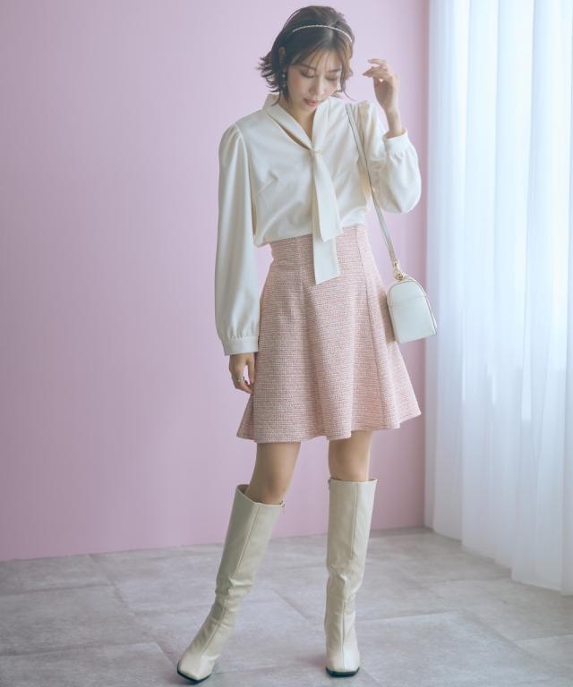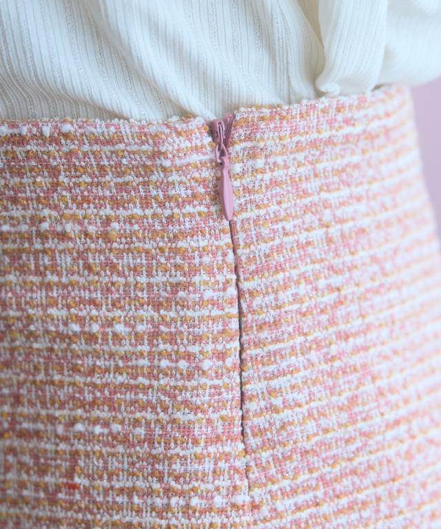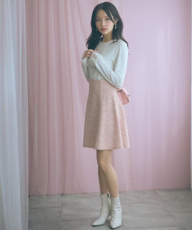 上品なツイード調素材が魅力のショート丈スカート。 ■デザイン ふんわりと広がるAラインシルエットが女性らしさを引き立て、脚長効果も期待できます。裏地はパンツ仕様になっているので、安心して着られる設計に。 ■素材 表情豊かな素材感のあるカットツイード調で華やかさをプラス。 ■おすすめのスタイリング どんなトップスにも合わせやすいシンプルなデザインで、オフィスからカジュアルまで幅広いシーンで活躍。同素材のジャケットとのセットアップで、ちょっとしたお呼ばれやデートにぴったりの一枚です。