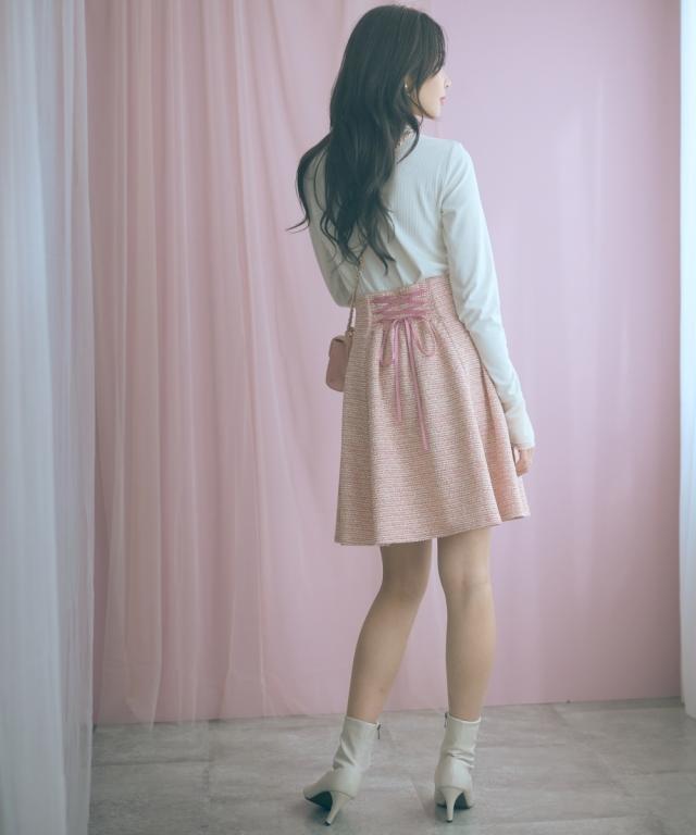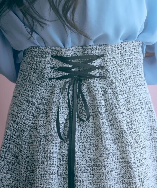 品質:ポリエステル95%・レーヨン4%・ポリウレタン1% 左脇ファスナー 透け感:なし 伸縮性:なし 生地の厚み:普通 光沢感:ややあり(ラメ糸使用) 裏地:あり ※裏地はパンツ仕様になっています。 ポケット:なし ウエスト:後ゴム・編み上げリボン 季節:春・秋・冬向き シルエット:普通 原産国:中国製 備考:手洗い