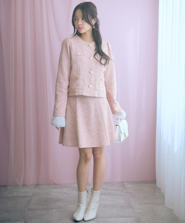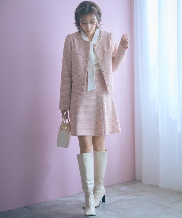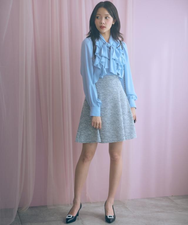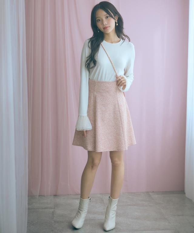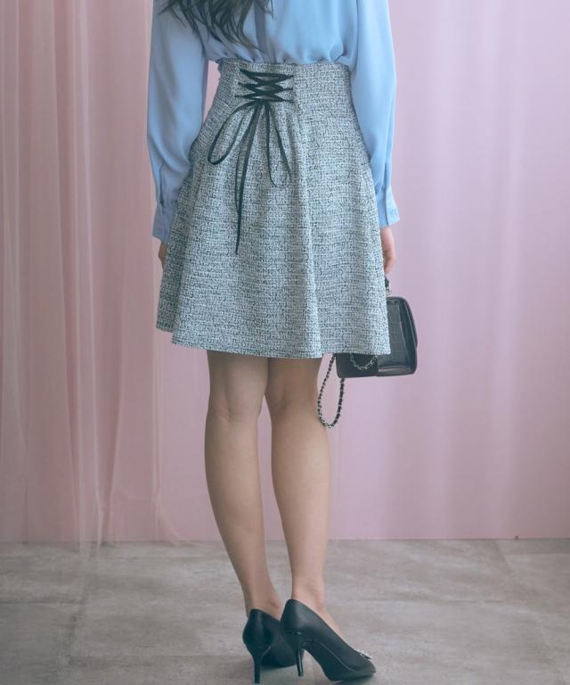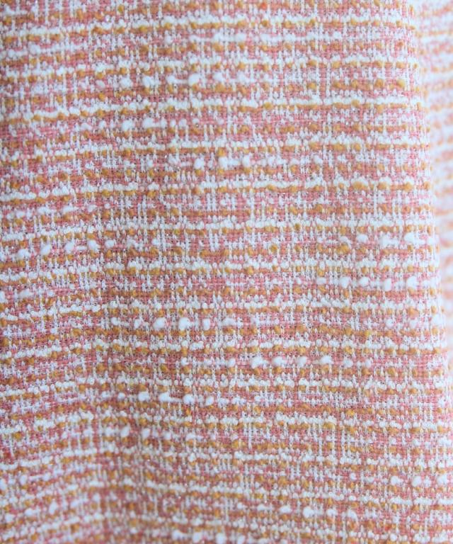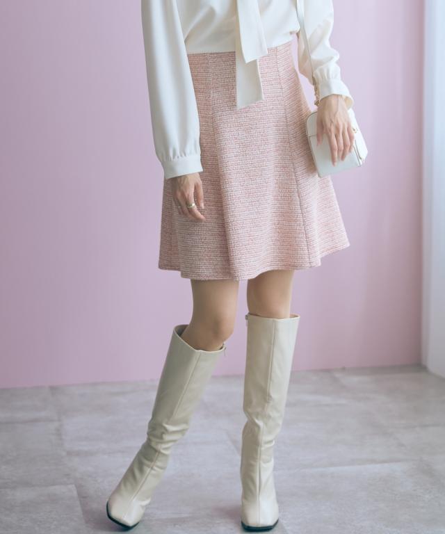上品なツイード調素材が魅力のショート丈スカート。 ■デザイン ふんわりと広がるAラインシルエットが女性らしさを引き立て、脚長効果も期待できます。裏地はパンツ仕様になっているので、安心して着られる設計に。 ■素材 表情豊かな素材感のあるカットツイード調で華やかさをプラス。 ■おすすめのスタイリング どんなトップスにも合わせやすいシンプルなデザインで、オフィスからカジュアルまで幅広いシーンで活躍。同素材のジャケットとのセットアップで、ちょっとしたお呼ばれやデートにぴったりの一枚です。