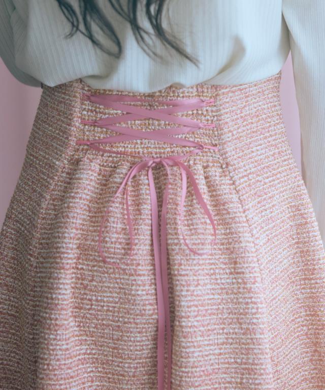 品質:ポリエステル95%・レーヨン4%・ポリウレタン1% 左脇ファスナー 透け感:なし 伸縮性:なし 生地の厚み:普通 光沢感:ややあり(ラメ糸使用) 裏地:あり ※裏地はパンツ仕様になっています。 ポケット:なし ウエスト:後ゴム・編み上げリボン 季節:春・秋・冬向き シルエット:普通 原産国:中国製 備考:手洗い