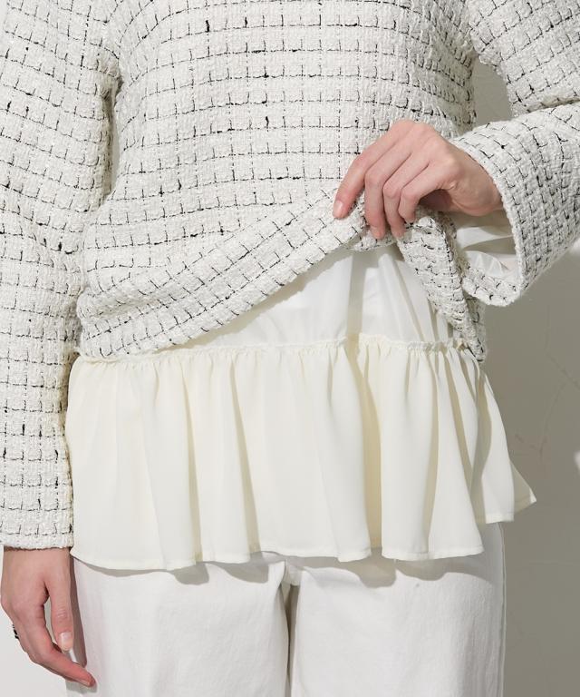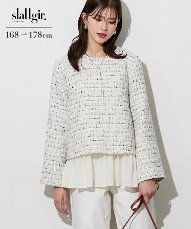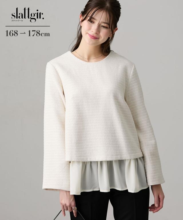 シャツ ブラウス トールサイズ レディース 高身長 ツイード裾フリル プルオーバー 春 秋 大きいサイズ | M/L | ニッセン nissen