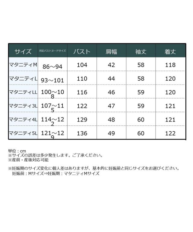 品質:[本体]ポリエステル65%・綿35%(カットソー ワッフル)[リブ部分]ポリエステル62%・綿33%・ポリウレタン5% 透け感:透けにくい *色によって透け感が異なる場合があります。淡色カラーはベージュインナーの着用をおすすめします。 伸縮性:ややあり 生地の厚み:普通 開き:前ボタン(胸下まで) 裏地:なし ポケット:両脇 季節:春・秋向き シルエット:ややゆったり 原産国:中国製 備考:洗濯機OK(ネット使用) 単位:cm ※サイズの誤差は多少発生します。ご了承ください。 ※産前・産後対応可能 ※妊娠期のサイズ変化に個人差はありますが、基本的に妊娠前と同じサイズをお選びください。 妊娠前:Mサイズ⇒妊娠期:マタニティMサイズ