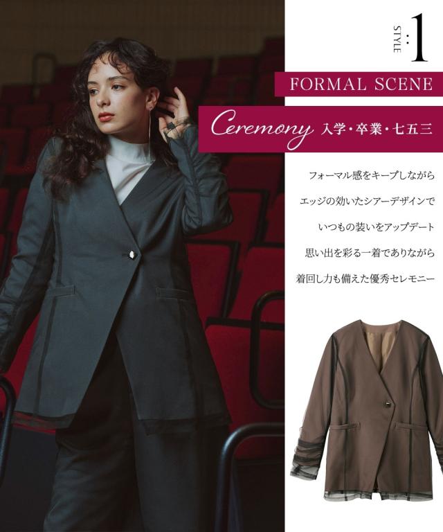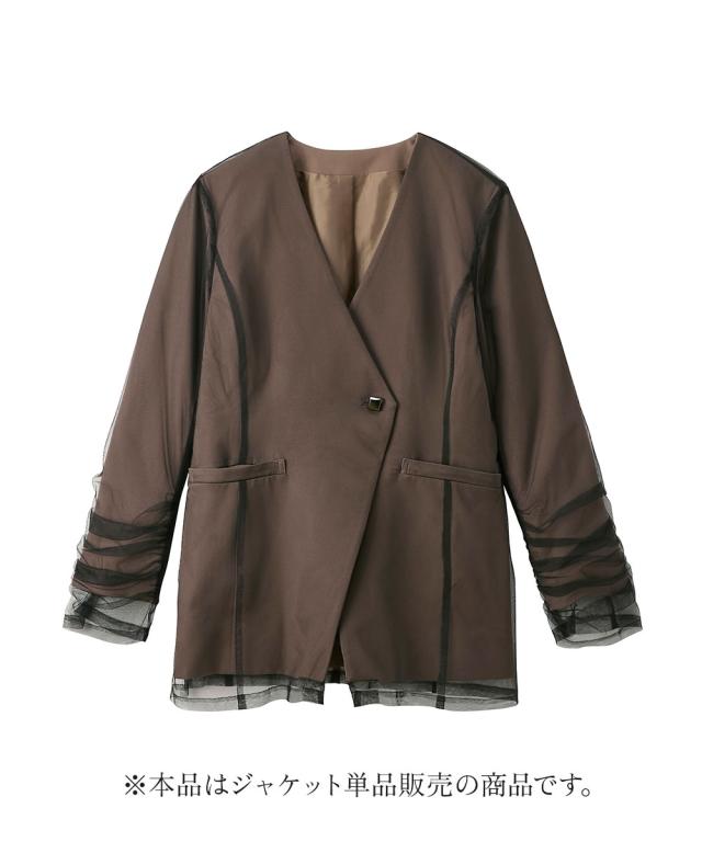 スーツ フォーマル レディース お呼ばれ よそいき 結婚式 パーティー オケージョン ドレス 単品 チュールレイヤード デザイン ジャケット 〔Callarus〕 ニッセン