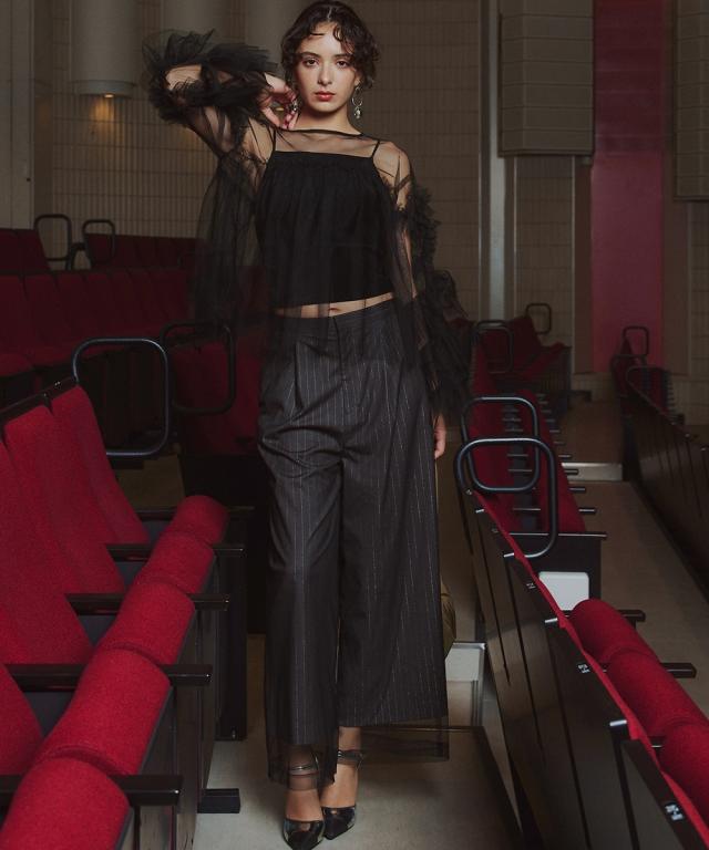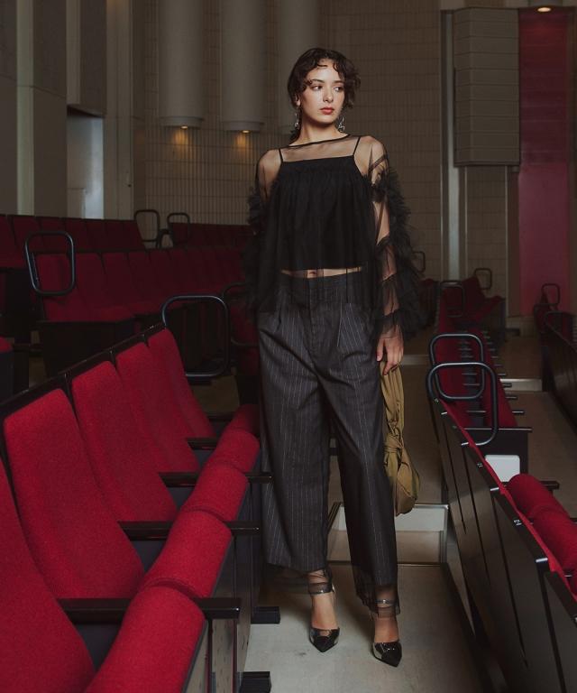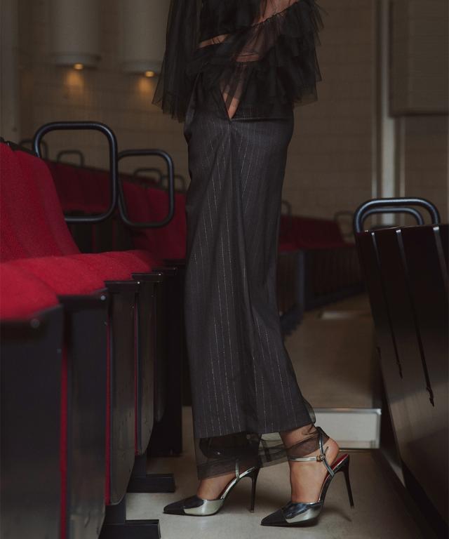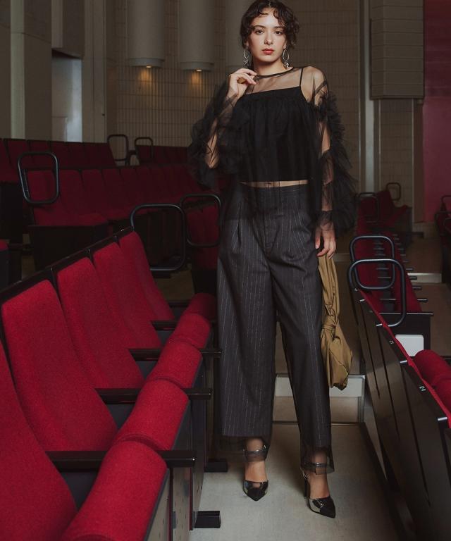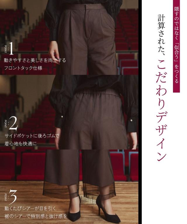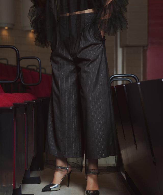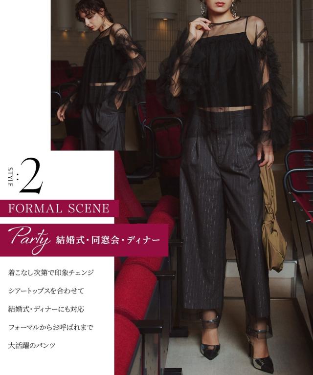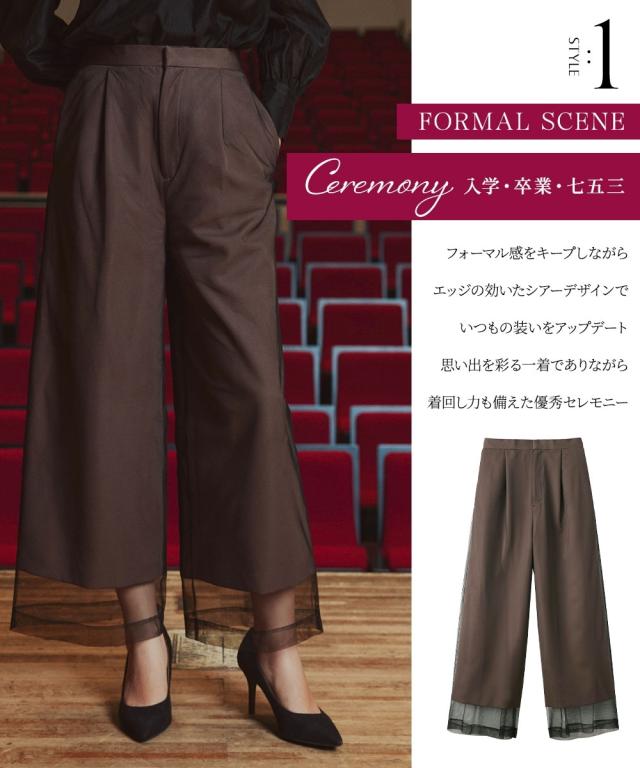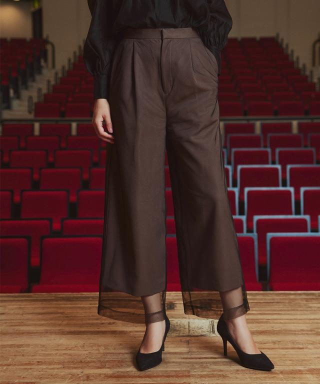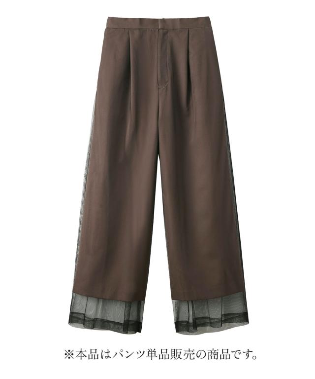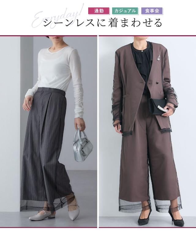 スーツ フォーマル レディース お呼ばれ よそいき 結婚式 パーティー オケージョン ドレス 単品 チュールレイヤード デザイン ワイド パンツ 〔Callarus〕