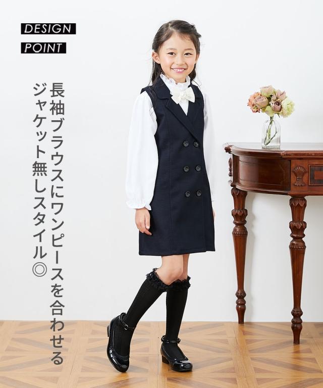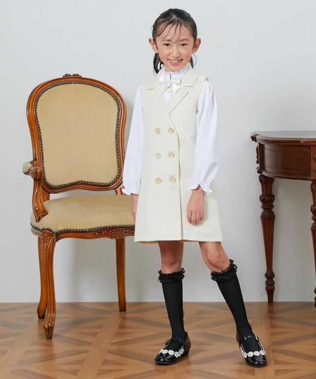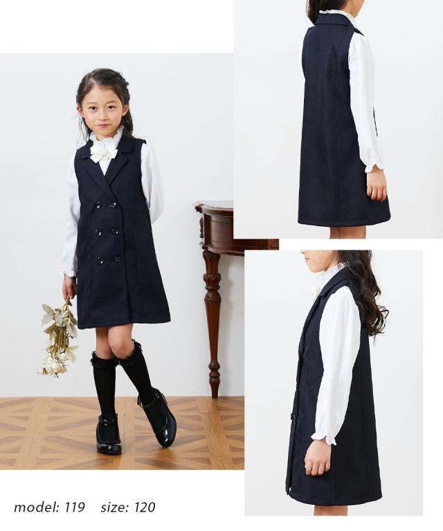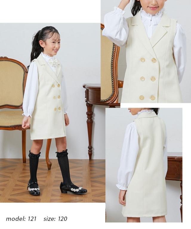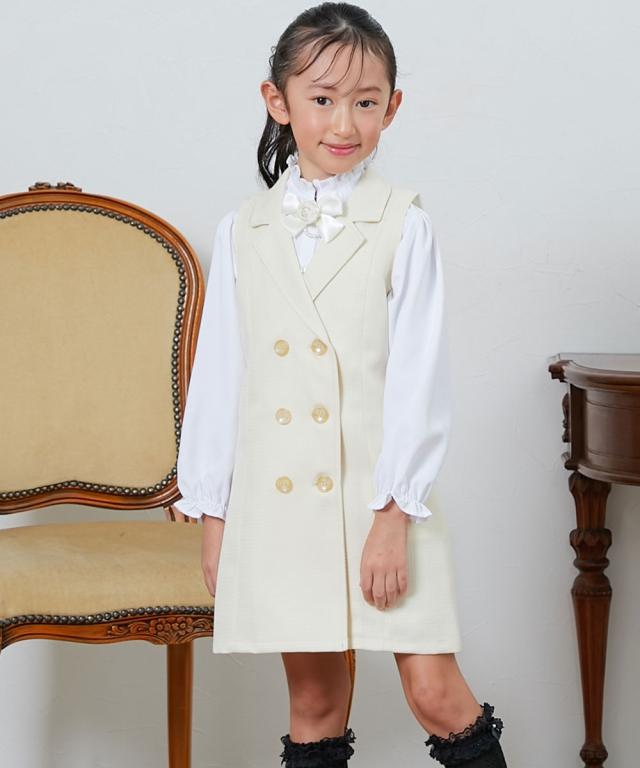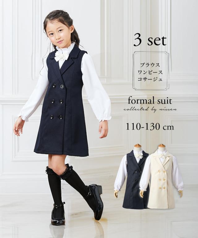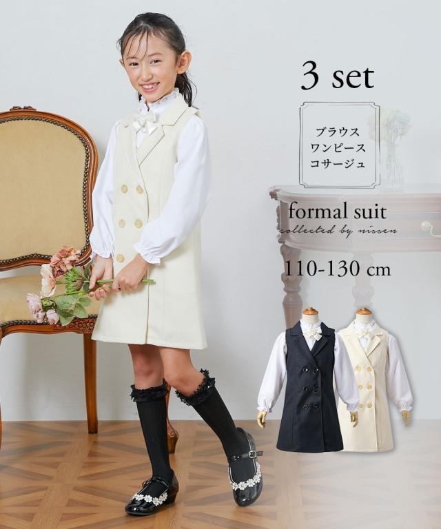 フォーマル スーツ 子供服 キッズ 卒園 入学 3点セット ブラウス +ジレ風 ワンピース +コサージュ 女の子 春 秋 入卒 | 身長110/120/130cm | ニッセン nissen