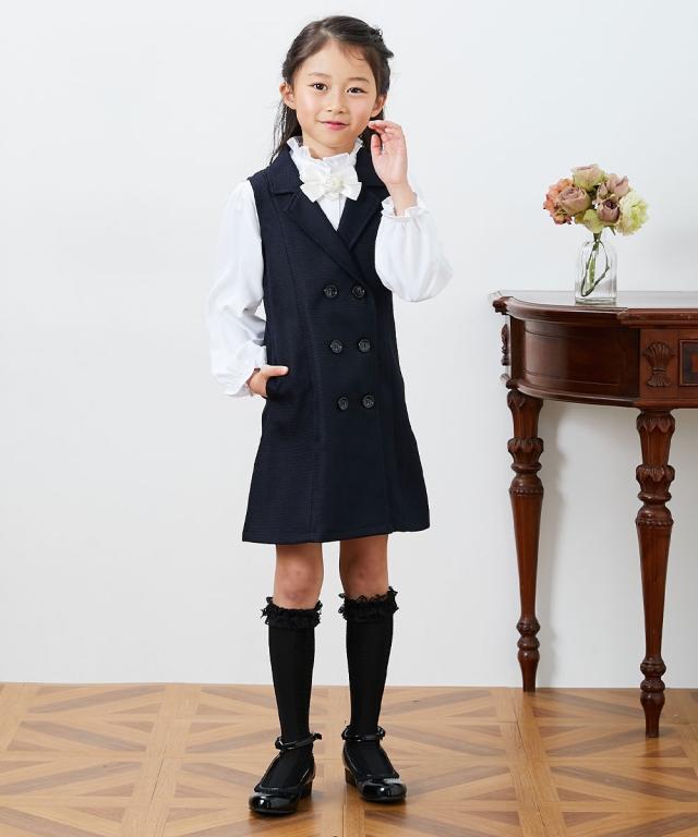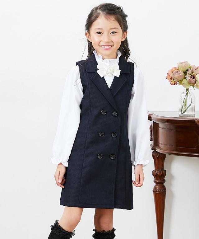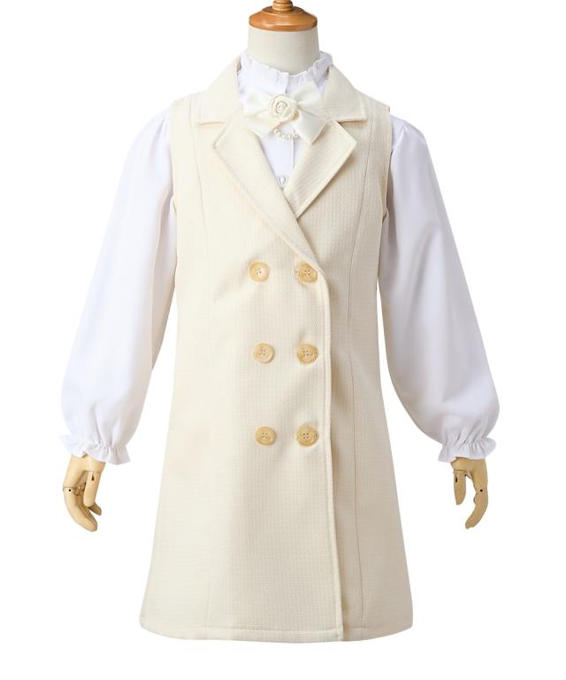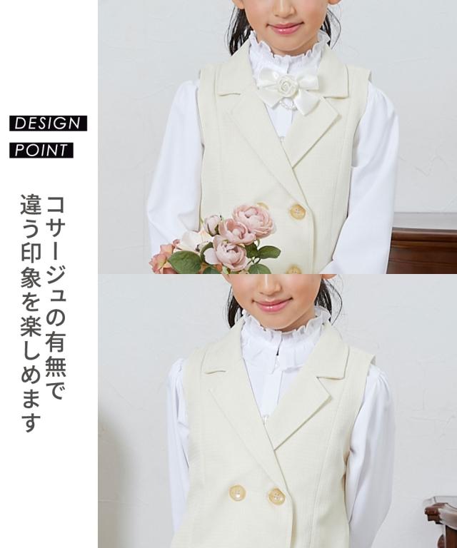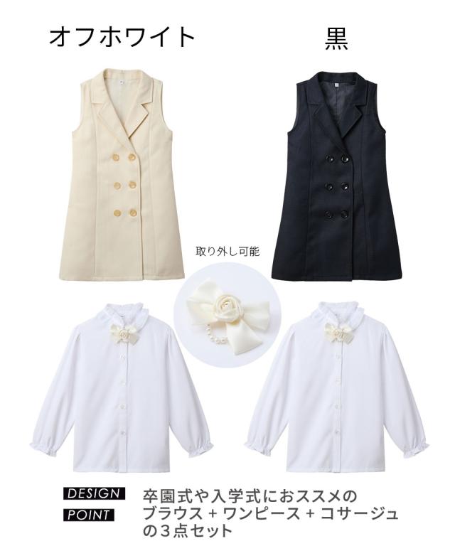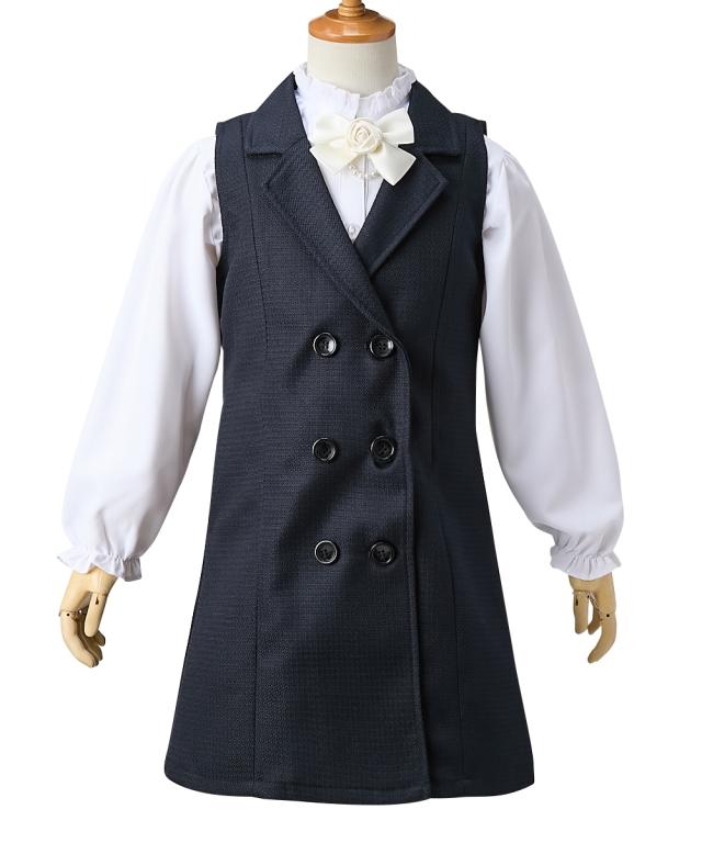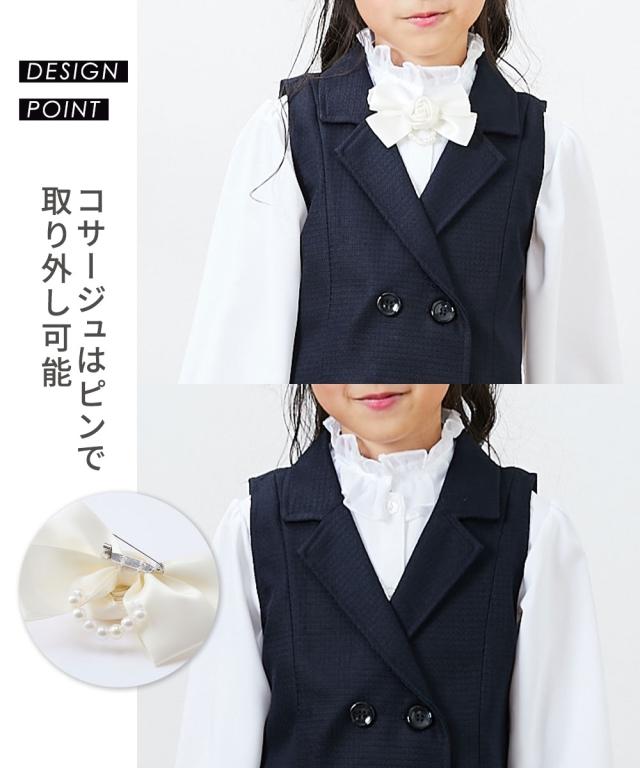 【卒園 入学】フォーマルスーツ3点セット(ブラウス+ジレ風ワンピース+コサージュ)(女の子)