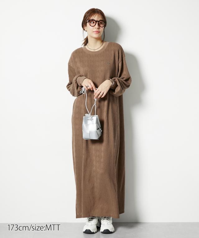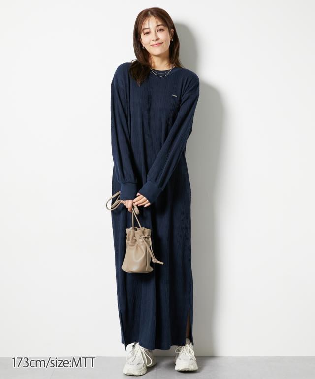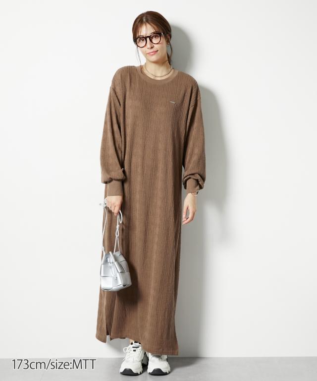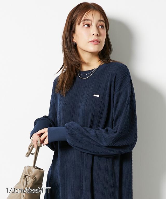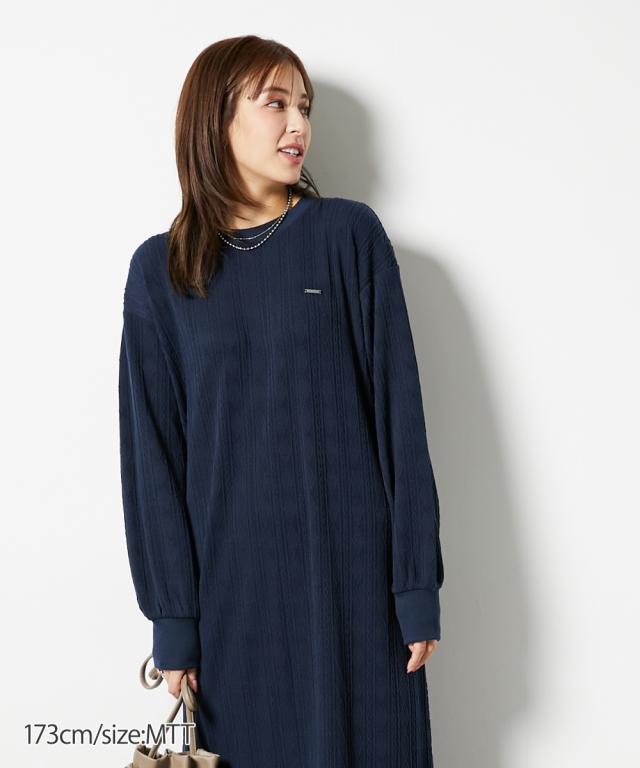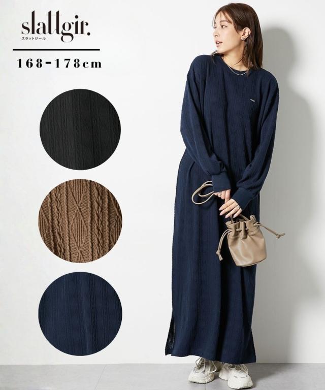 ワンピース ロング マキシ トールサイズ レディース 高身長 ケーブルジャガード カットソー クルーネック 春 冬 大きいサイズ | LL/3L/4L/5L | ニッセン nissen