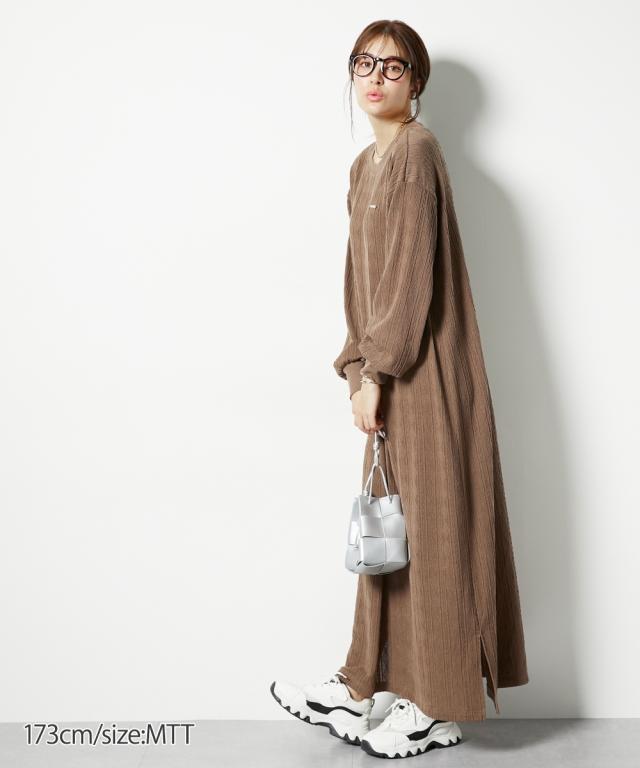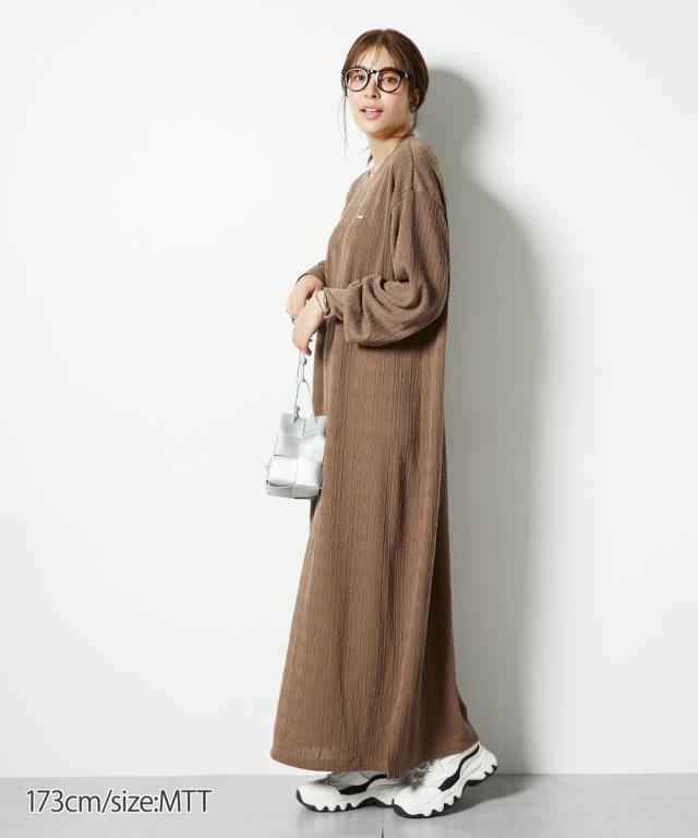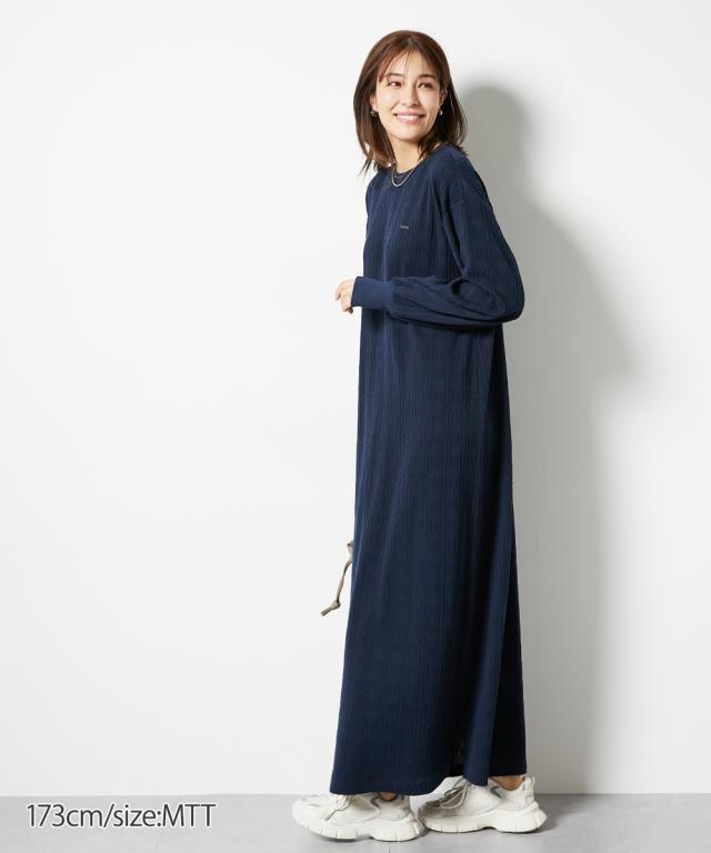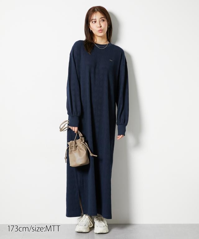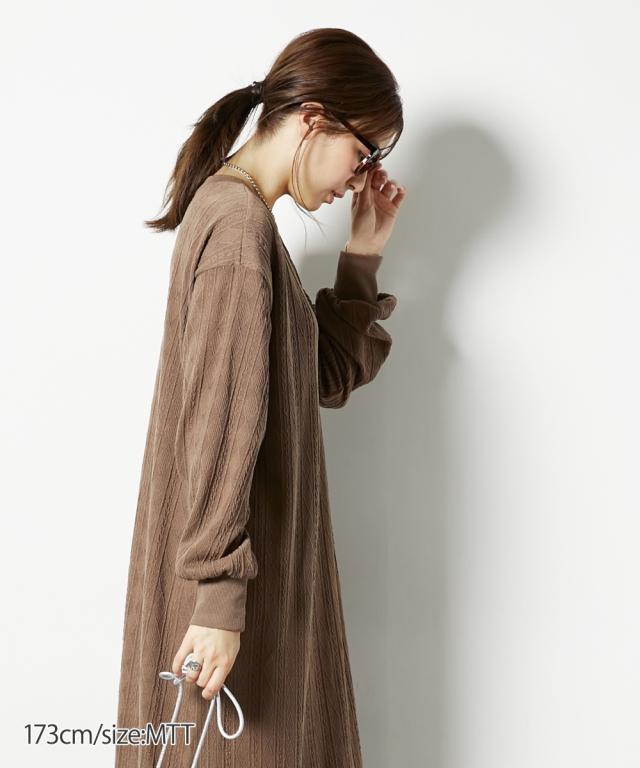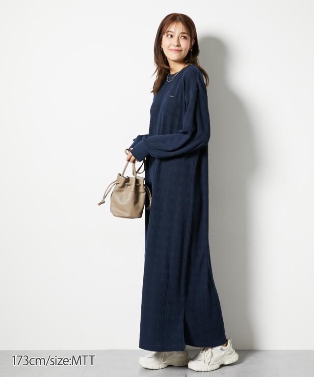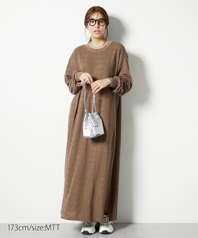 ワンピース ロング マキシ トールサイズ レディース 高身長 ケーブルジャガード カットソー クルーネック 春 冬 大きいサイズ | LL/3L/4L/5L | ニッセン nissen