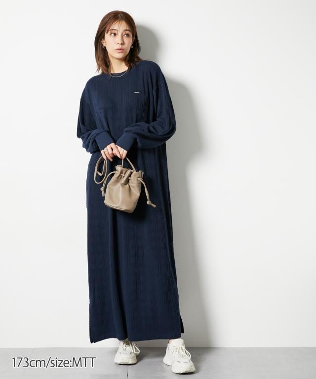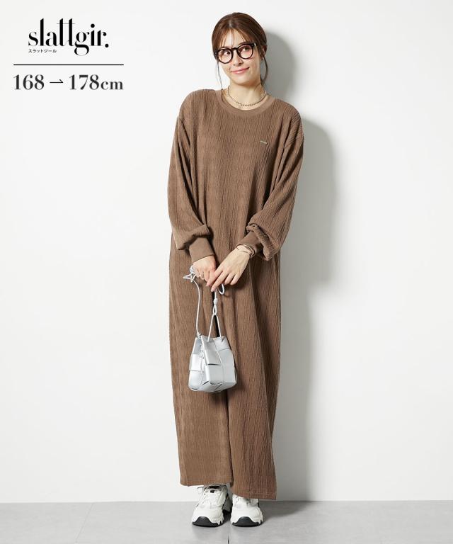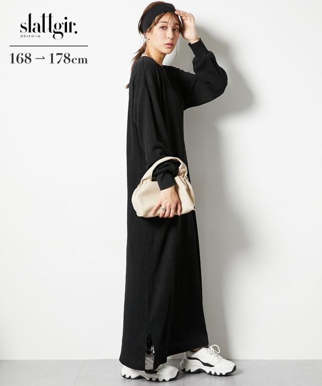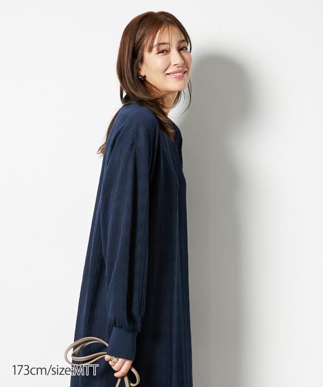 【高身長の方向け】極上ジャガードカットソーの着心地らくちんワンピース ■デザイン 程よい厚みが体のラインを拾いにくく、縦長の美シルエットで自然に体型をカバーします。胸元には上品に光るシルバーのアクセントプレートをプラス。忙しい日も一枚でサマになる、高身長女性の救世主ワンピースです! ■素材 繊細な織り柄のジャガードカットソーが、カジュアルながらも上品な印象をキープ。 ■おすすめのスタイリング デニムジャケットや、レザージャケットを羽織ると長身のメリハリが強調されておすすめ。足元にはスニーカーを合わせてとことんカジュアルに!