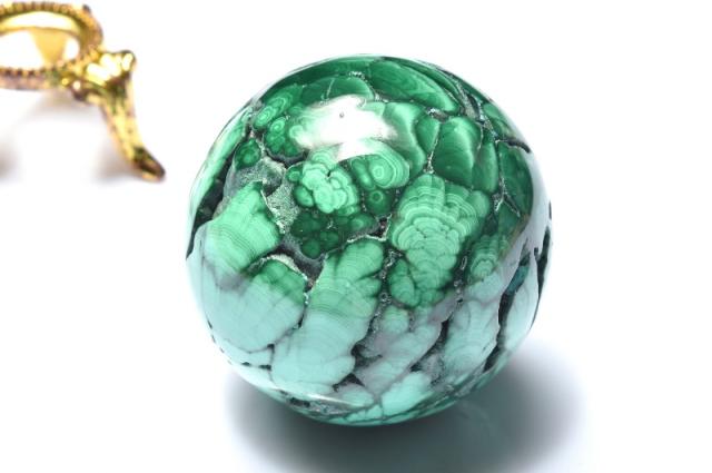 | 特徴・意味 | 特有のマーブル模様が美しく高発色のグリーンカラーから癒やしをもらえそうです。 丸玉は360度の全ての面からパワーを発し、持ち主や置いた場所の魔除け、 災難除けはもちろん、幸運のパワーを拡散して引き寄せてくれるといわれています。 孔雀石(マラカイト)は銅を含むもっとも一般的な二次鉱物です。 一次鉱床の銅鉱石が大気中の二酸化炭素や地下水の作用によって風化し、銅化合物が濃集して形成された二次鉱床として一次鉱床の周辺などに分布します。 現在ではロシアのウラル山地、次いで南アフリカが主な産地となっています。ウラルでは建築建材に利用できるほど大きな孔雀石を産出するそうです。 |