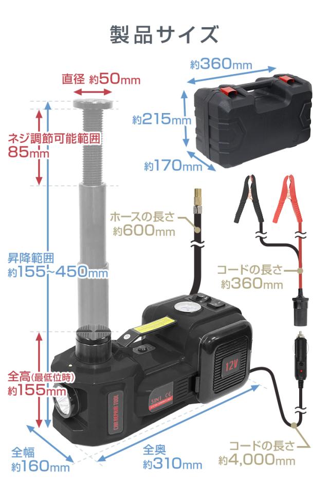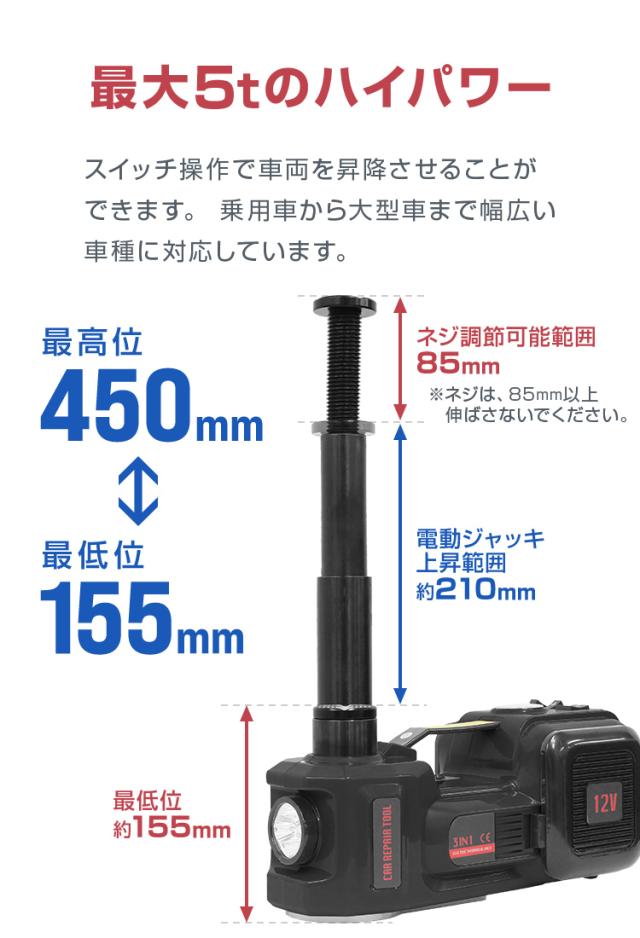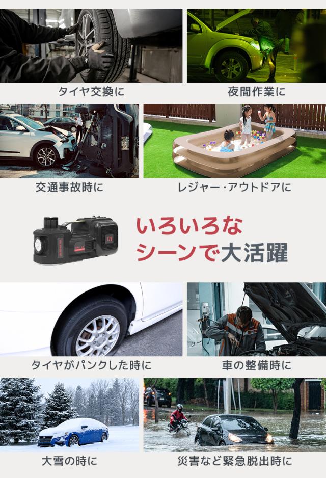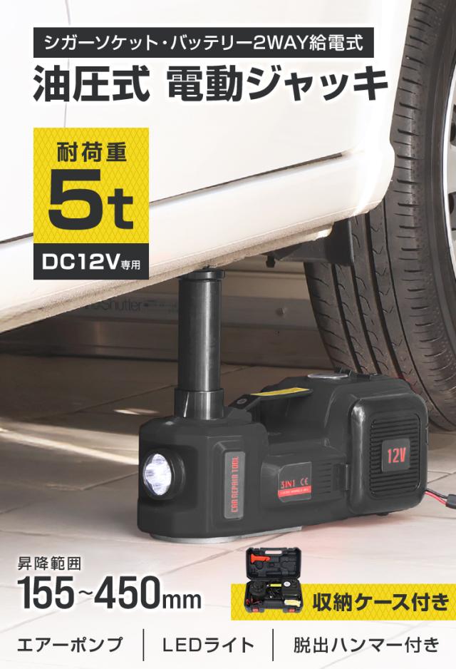 電動油圧ジャッキ 空気入れポンプ 5トン対応 電動ジャッキ DC12V 車載用 タイヤ空気入れ LEDライト付 脱出ハンマー付 コンパクト 軽量 送料無料 WEIMALL
