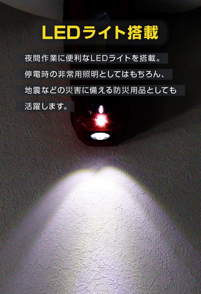 LEDライトも搭載しているので、夜間や暗所での作業も安心して行えます☆