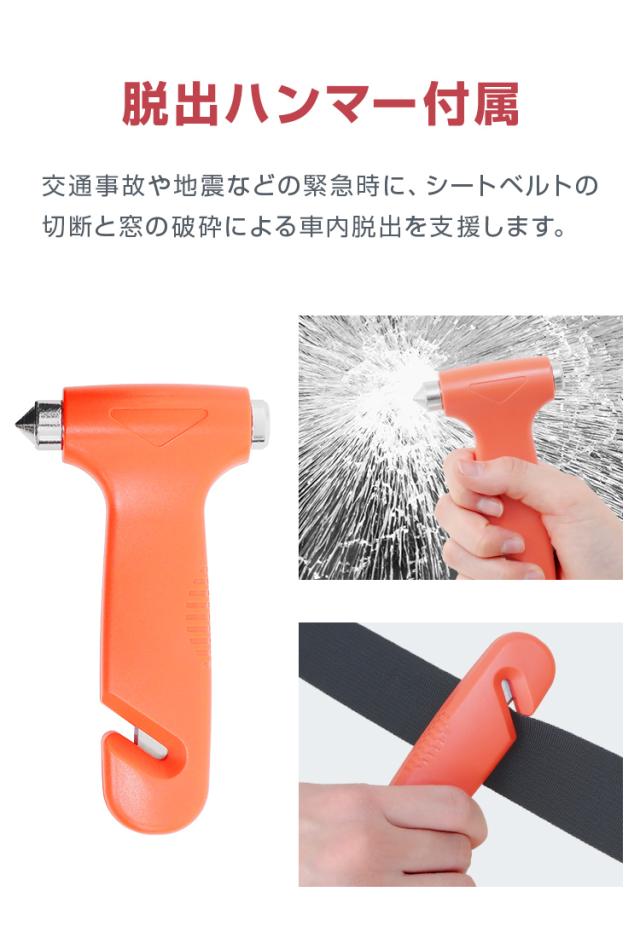 さらに安心!緊急脱出用ハンマーや各種付属品も揃っているので、