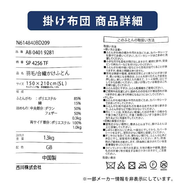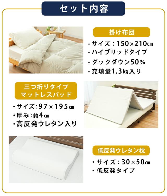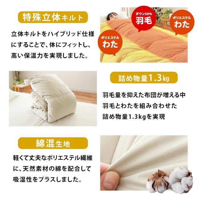 [keyword | 羽毛布団 ハイブリッド掛け布団 羽毛 ポリエステルわた 立体キルト 保温 掛け布団 西川 マットレスパッド 高反発ウレタン 三つ折り 軽量 約2.5kg 低反発枕 ウレタン枕 横向き寝 仰向き寝 洗濯機洗いOK 制菌加工 SEK 寝具セット 西川製]
