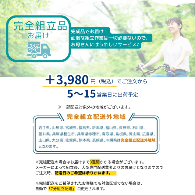 上記一部地域は完全組立配送が可能です。
