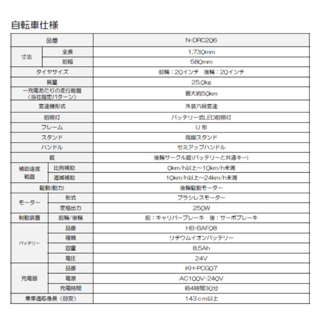 ■タイヤサイズ:前輪:20インチ 後輪:20インチ